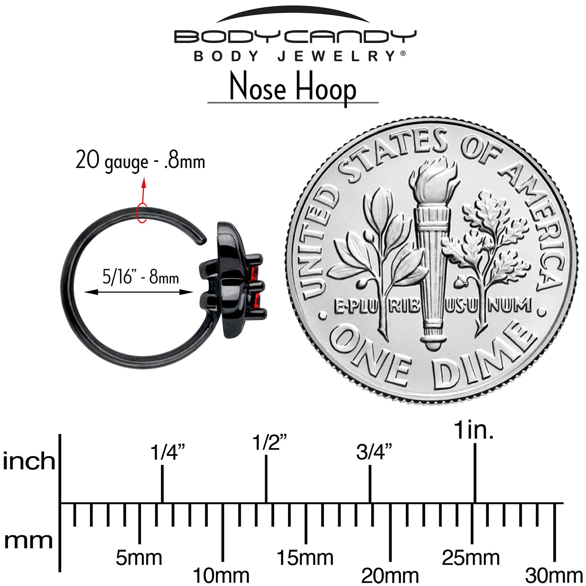 20 Gauge 5/16 Red CZ Gem Black Sleek Spider Nose Hoop