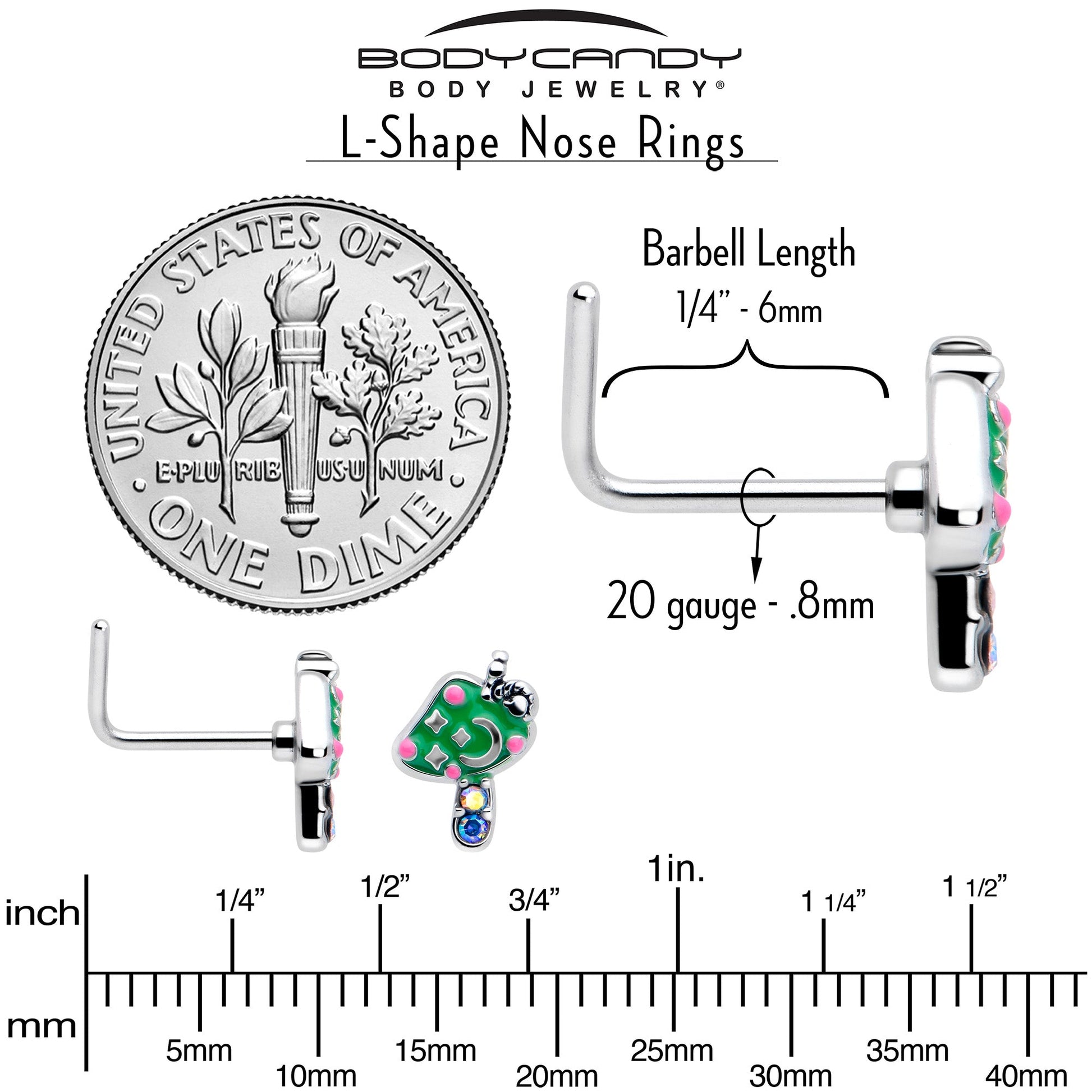 20 Gauge 7mm Aurora Gem Fanciful Green Mushroom L Shape Nose Ring
