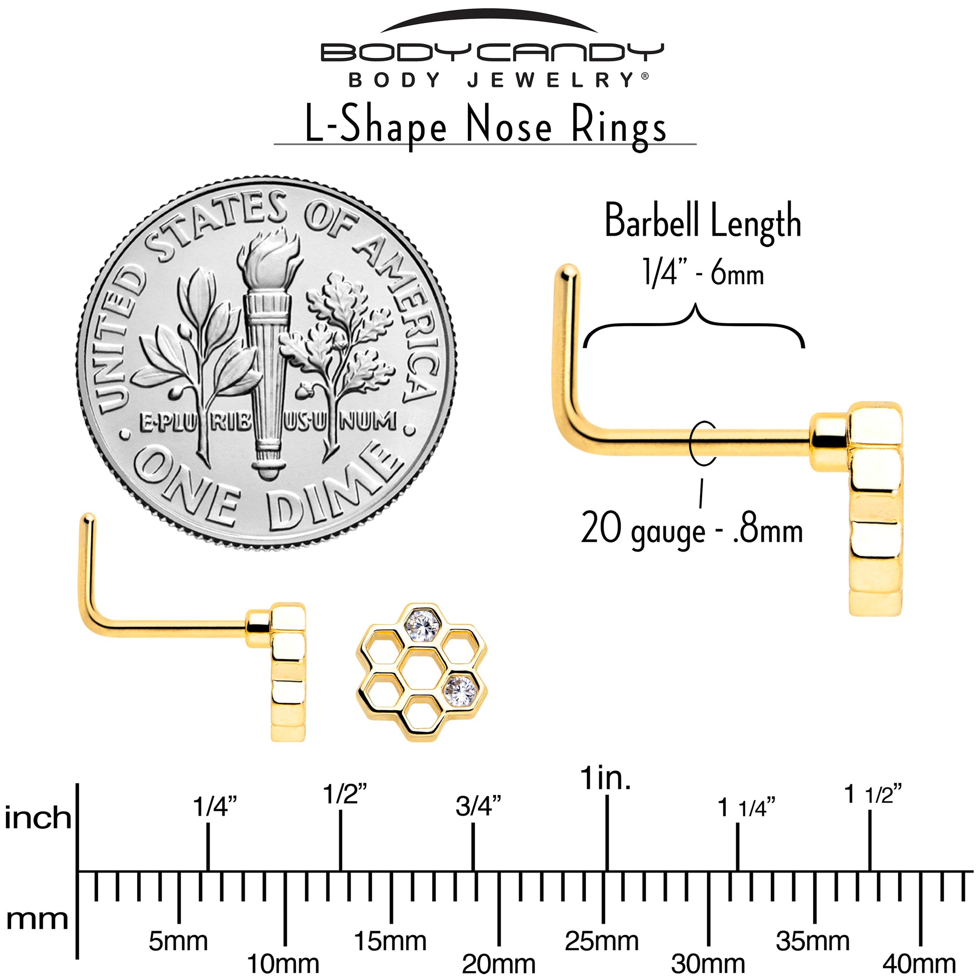 20 Gauge 7mm Clear CZ Gem Gold Tone Bee Hive Luv L Shape Nose Ring Set of 2