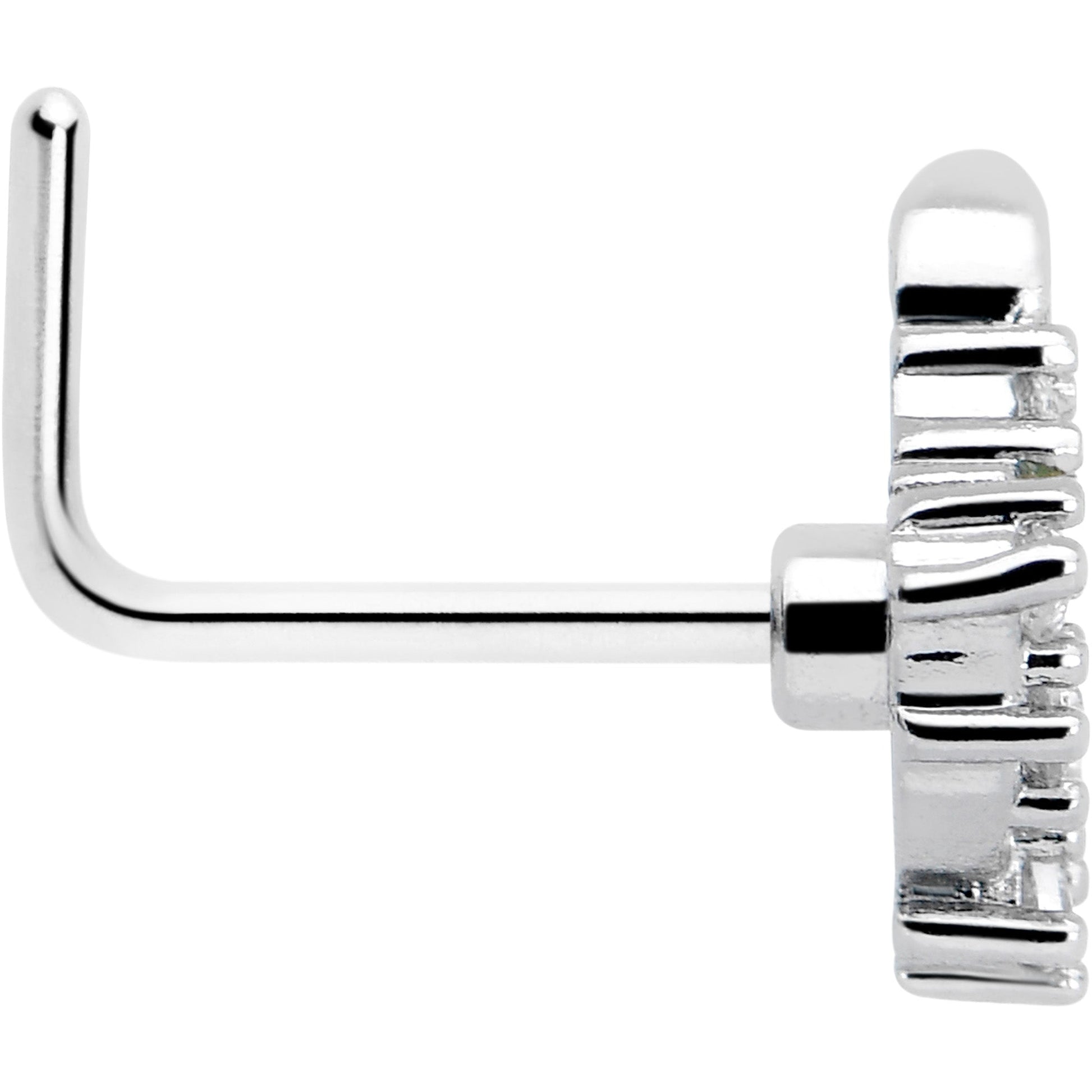20G 7mm Clear CZ Gem Morning Leaves L Shape Nose Ring