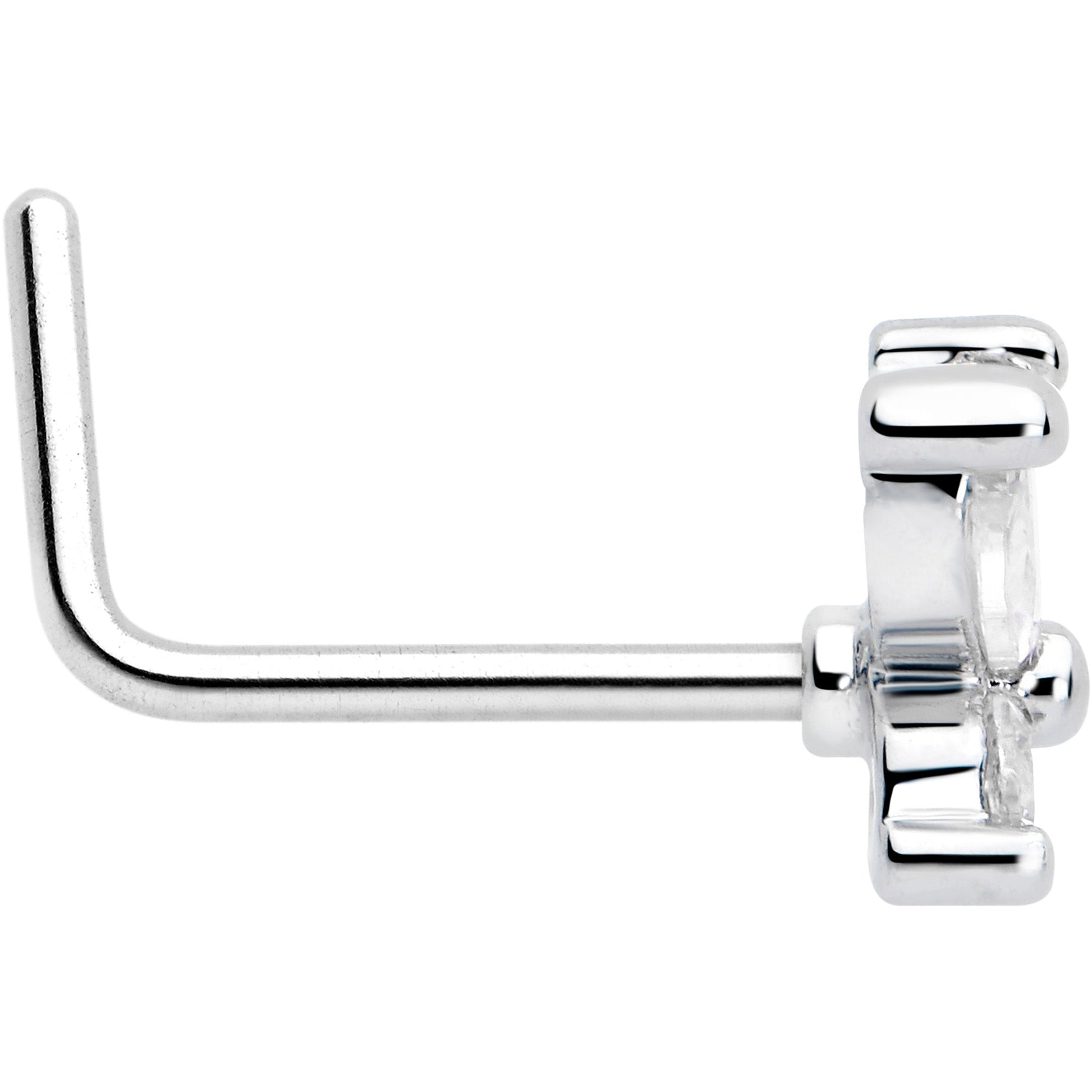 20G 7mm Clear CZ Gem Open Wing Butterfly L Shape Nose Ring