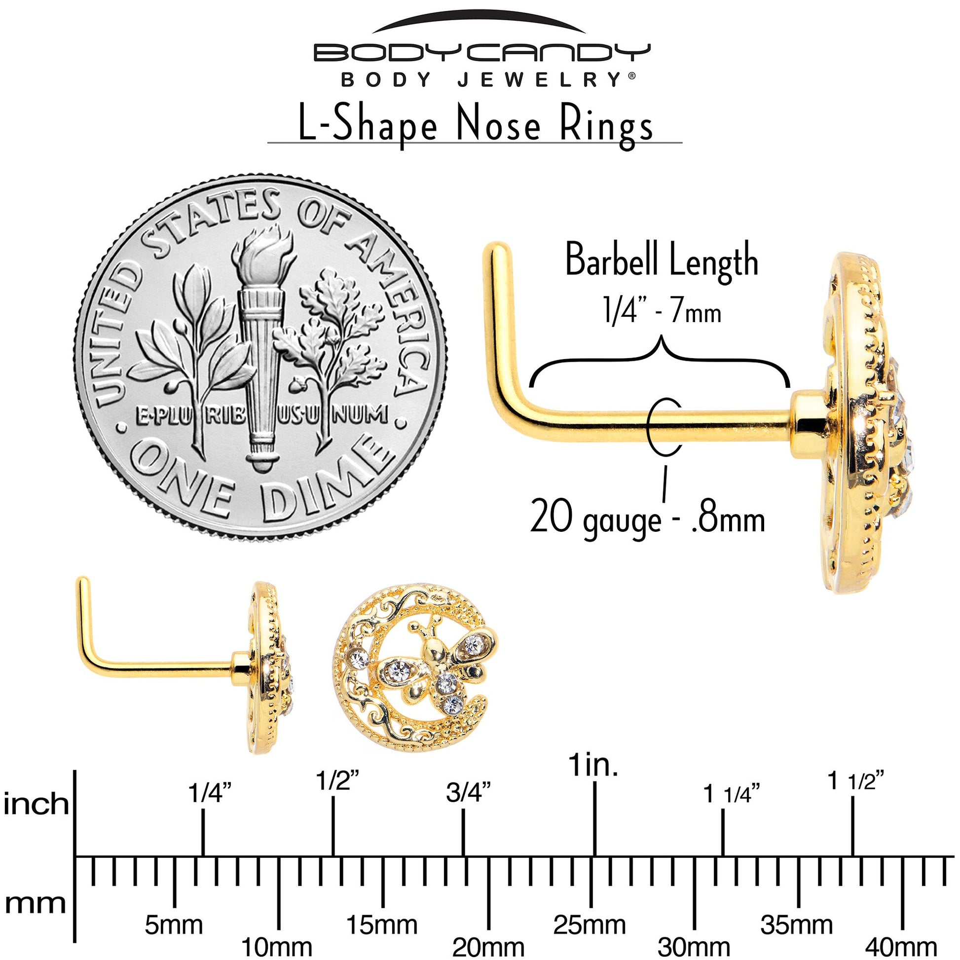 20 Gauge 7mm Clear Gem Gold Tone Lunar Dragonfly L Shape Nose Ring