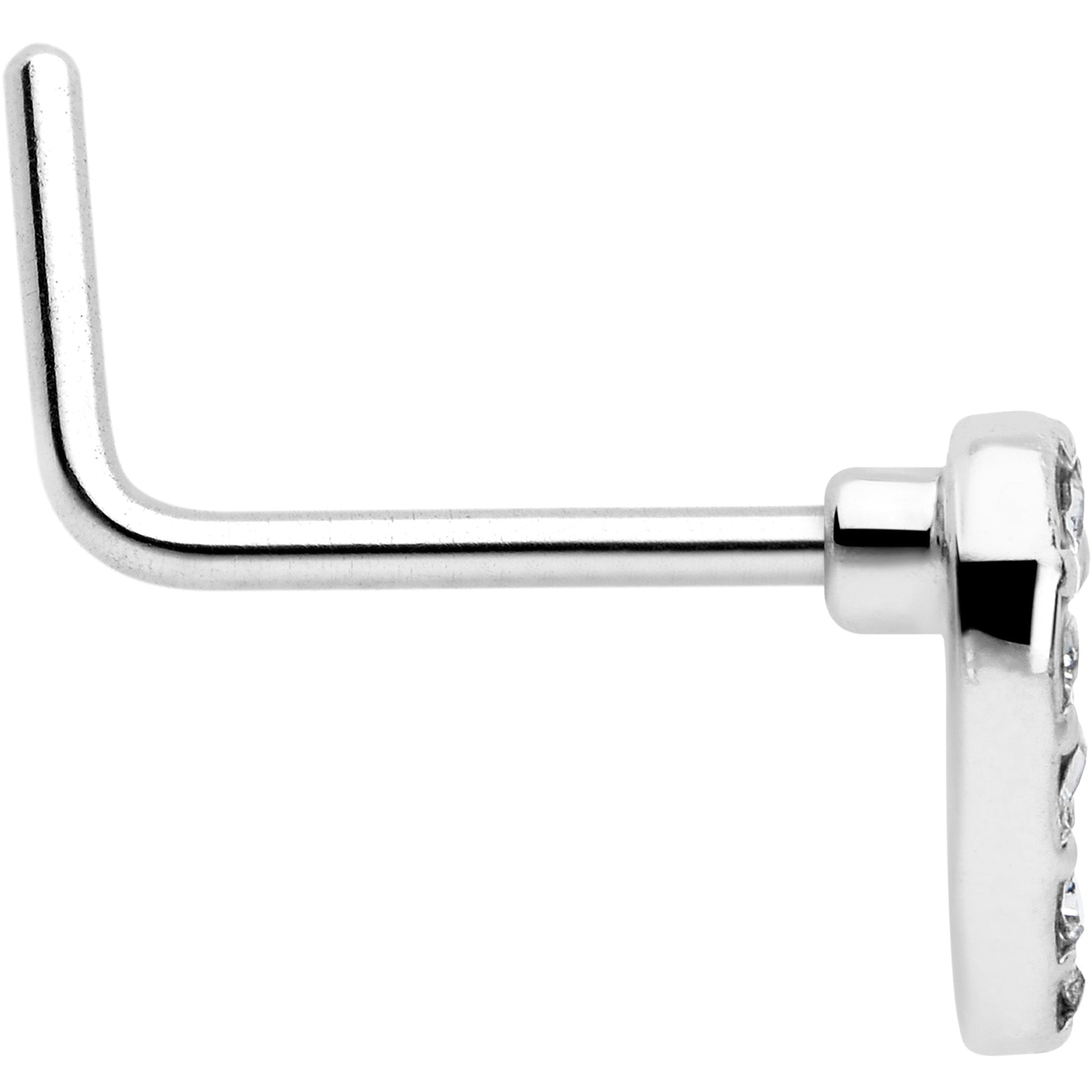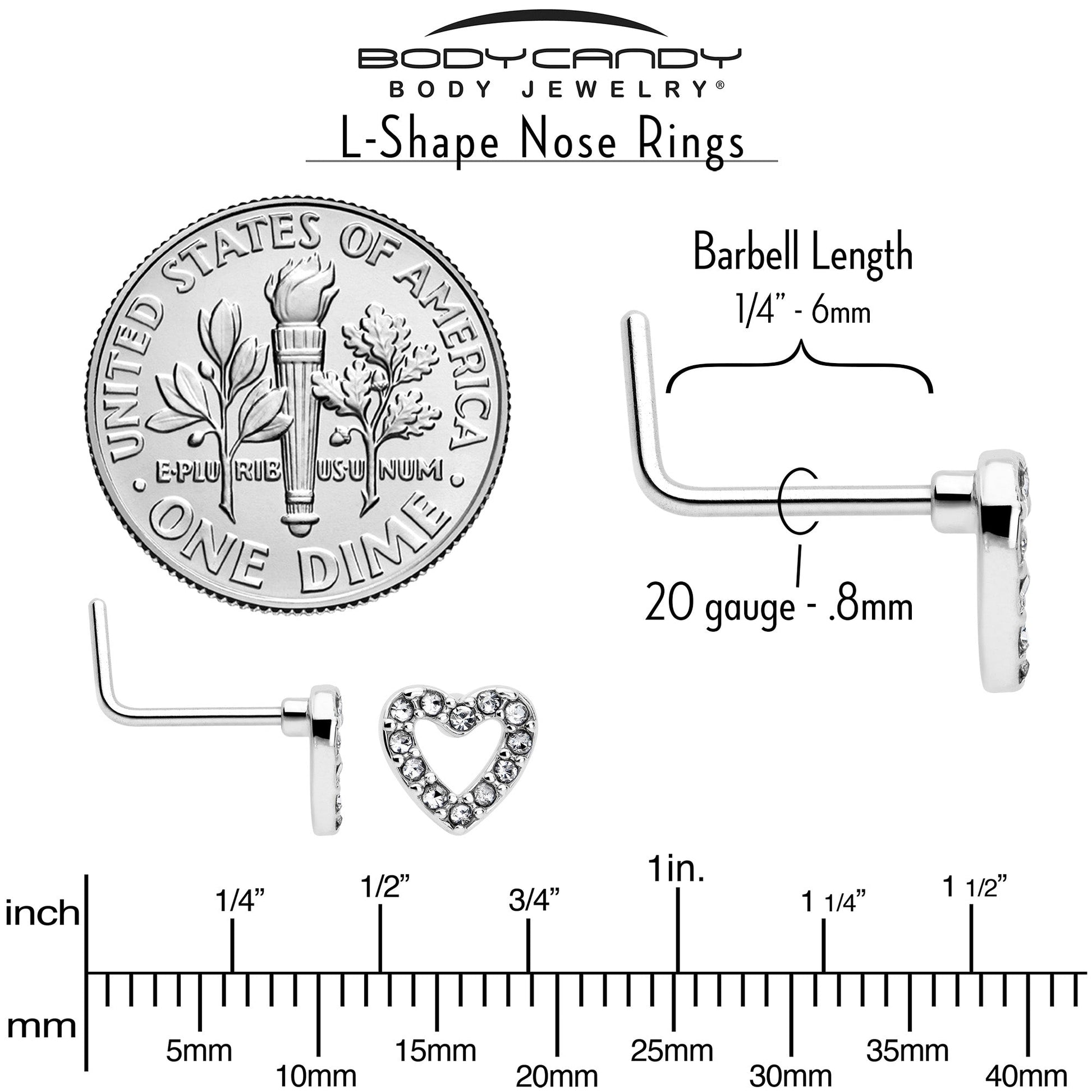 20 Gauge 7mm Clear Gem Hollow Paved Heart L Shape Nose Ring