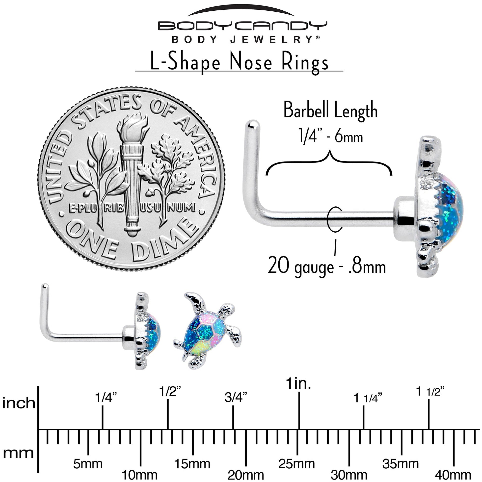 20 Gauge 7mm Glitter Turtle L Shape Nose Ring