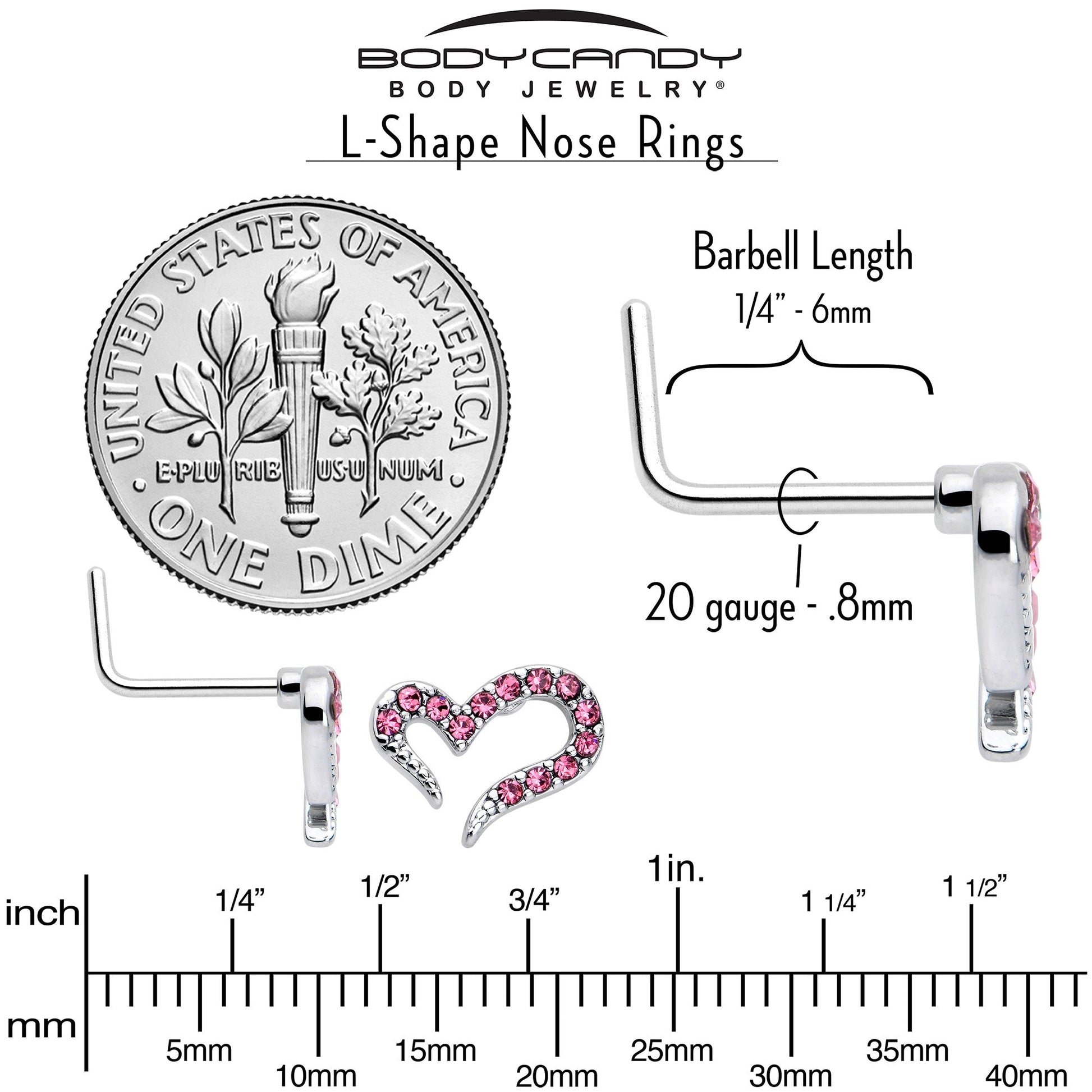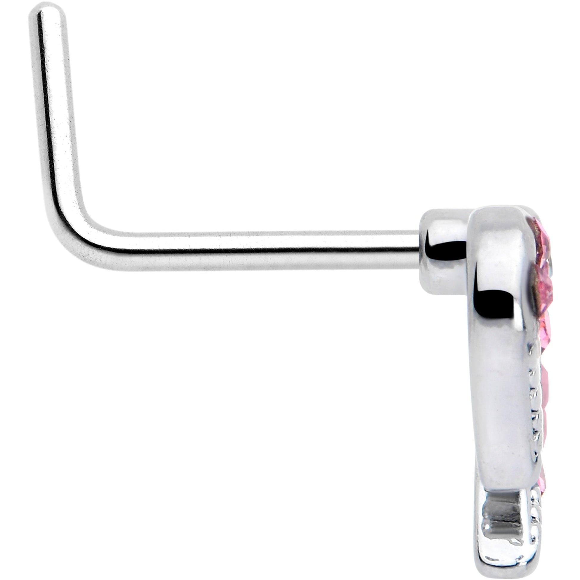 20 Gauge 7mm Pink Gem Stylized Heart L Shape Nose Ring