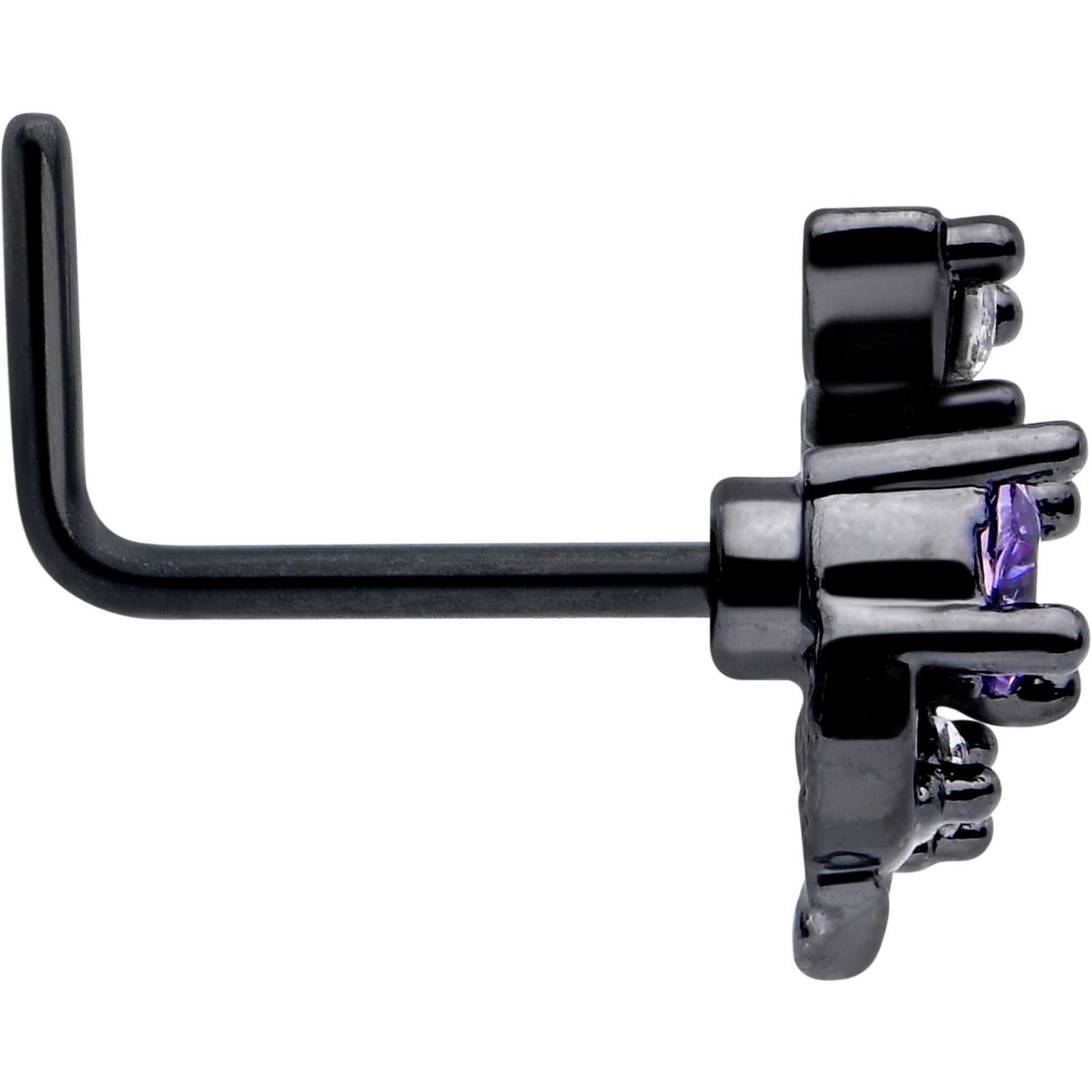 20G 7mm Purple Clear Gem Black Twining Vine L Shape Nose Ring