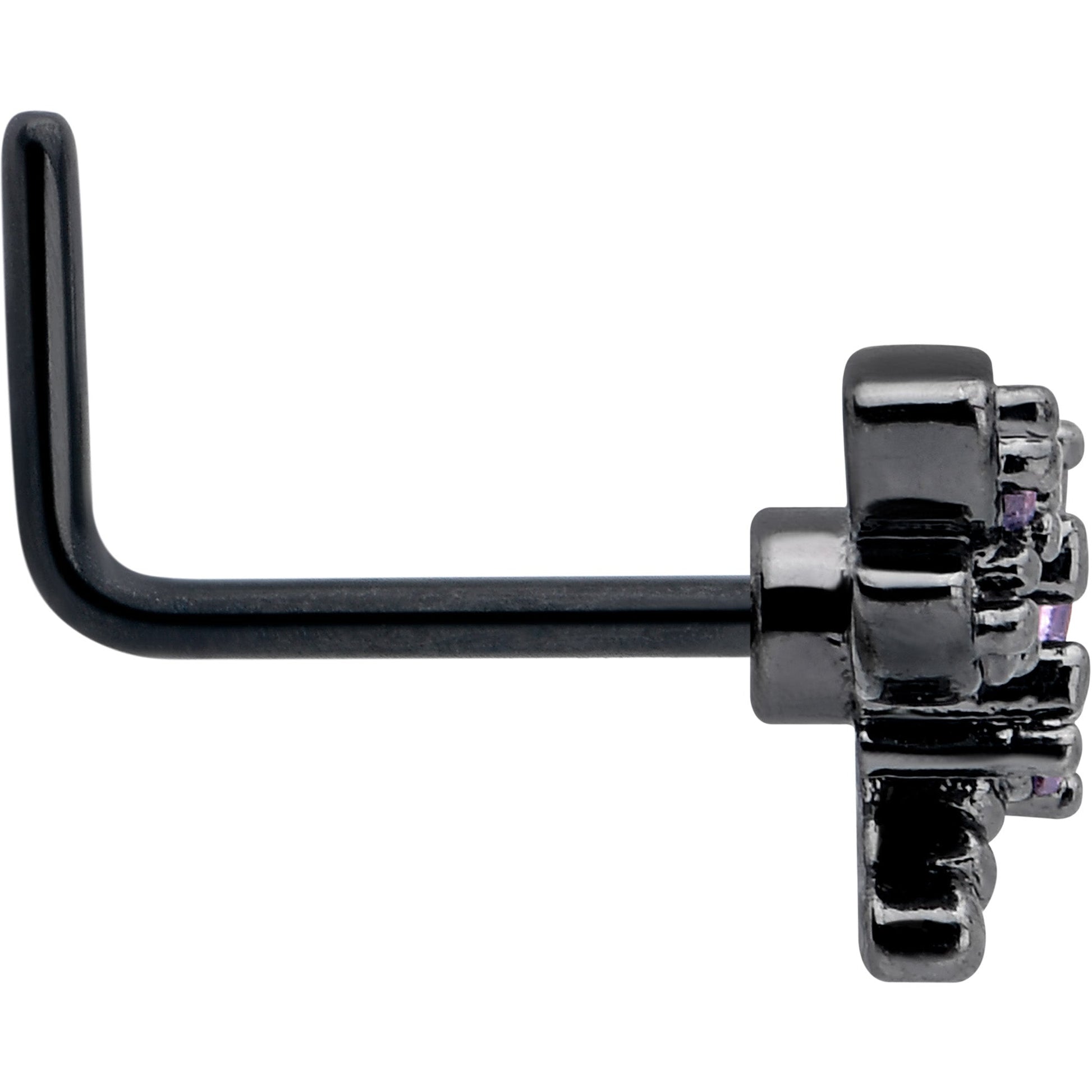 20G 7mm Purple CZ Gem Black Night Dragonfly L Shape Nose Ring