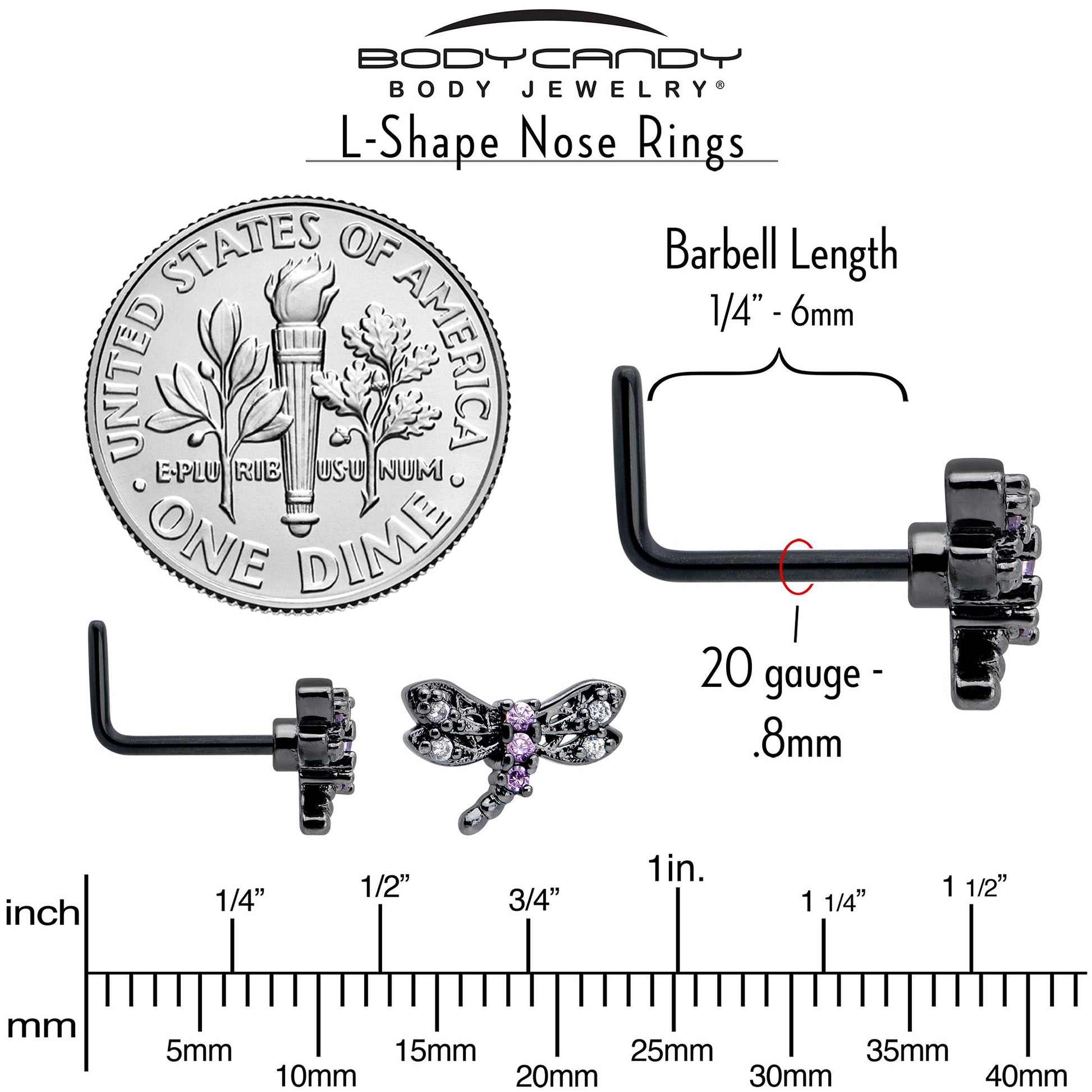 20 Gauge 7mm Purple CZ Gem Black Night Dragonfly L Shape Nose Ring