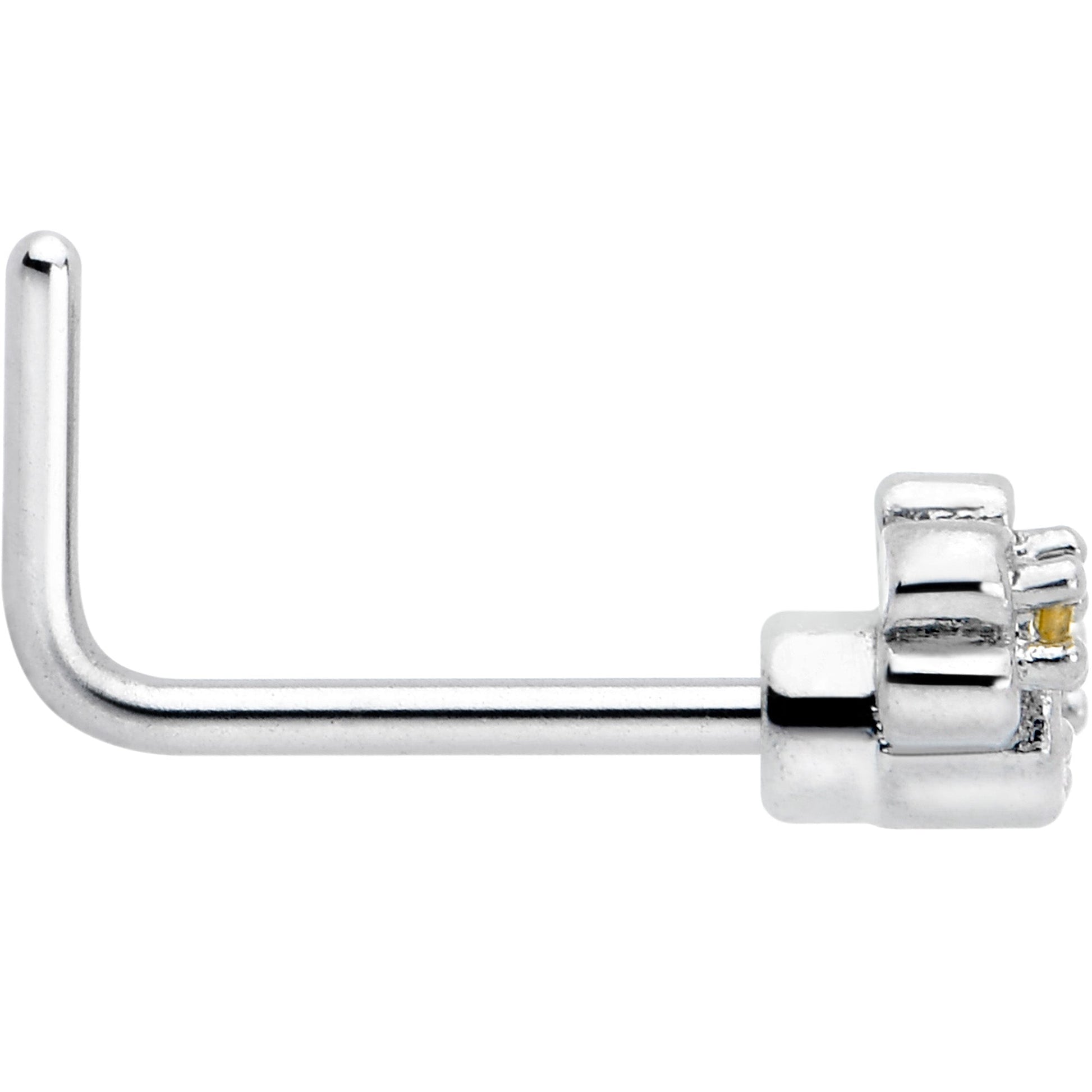 20 Gauge 7mm Yellow CZ Gem Flower Honeycomb L Shape Nose Ring