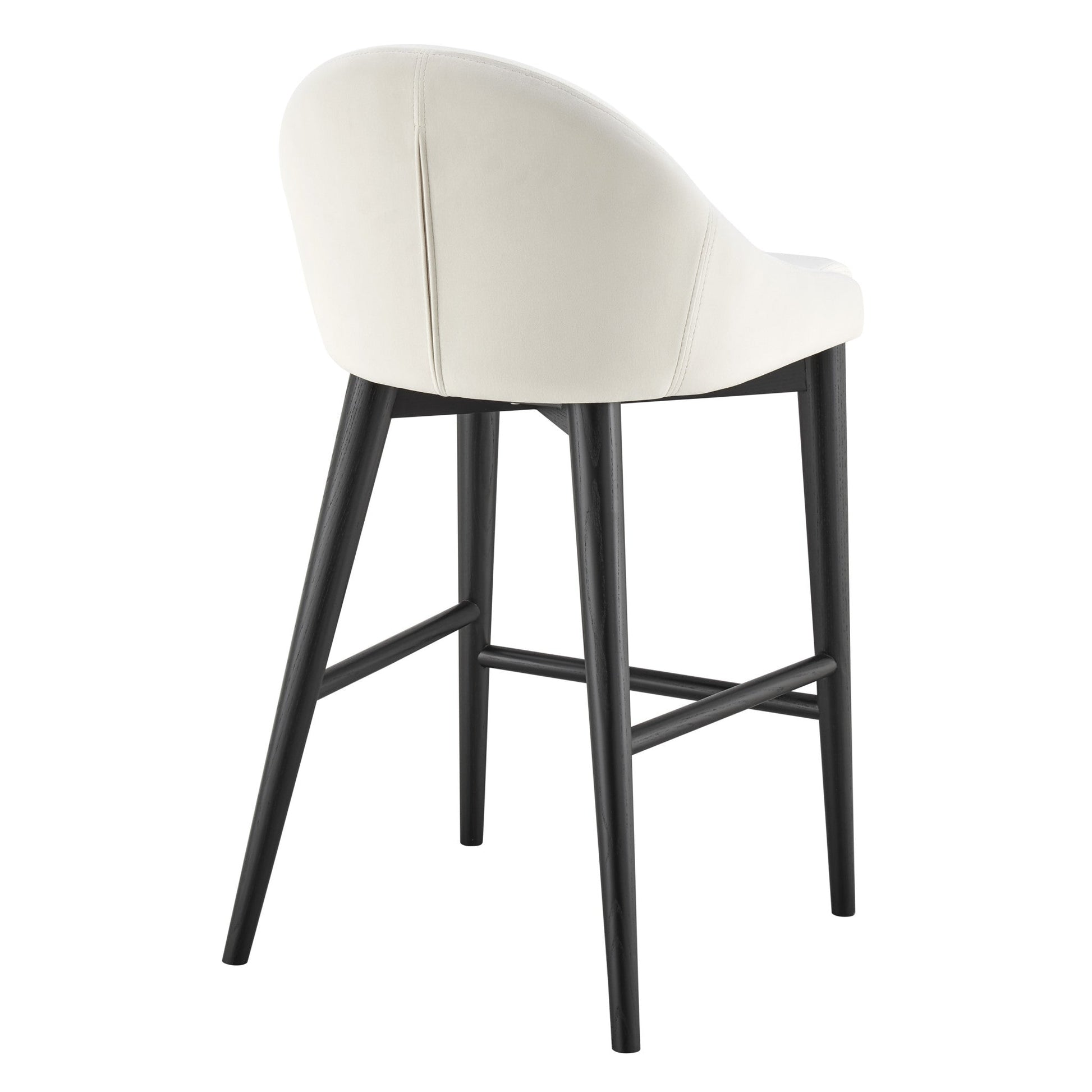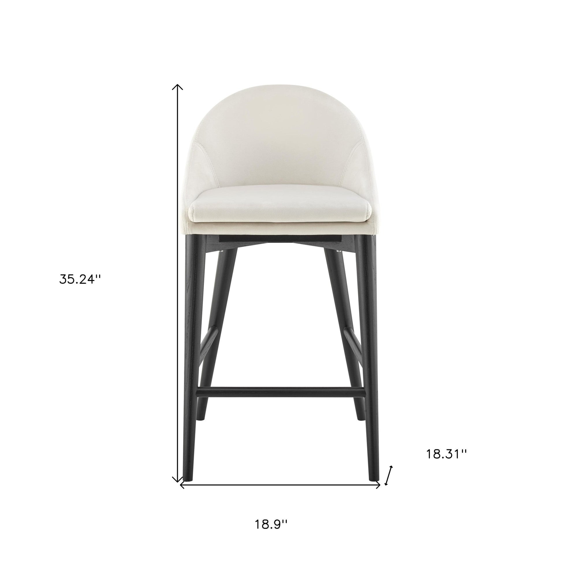 26" Beige And Black Velvet And Solid Wood Low Back Counter Height Bar Chair