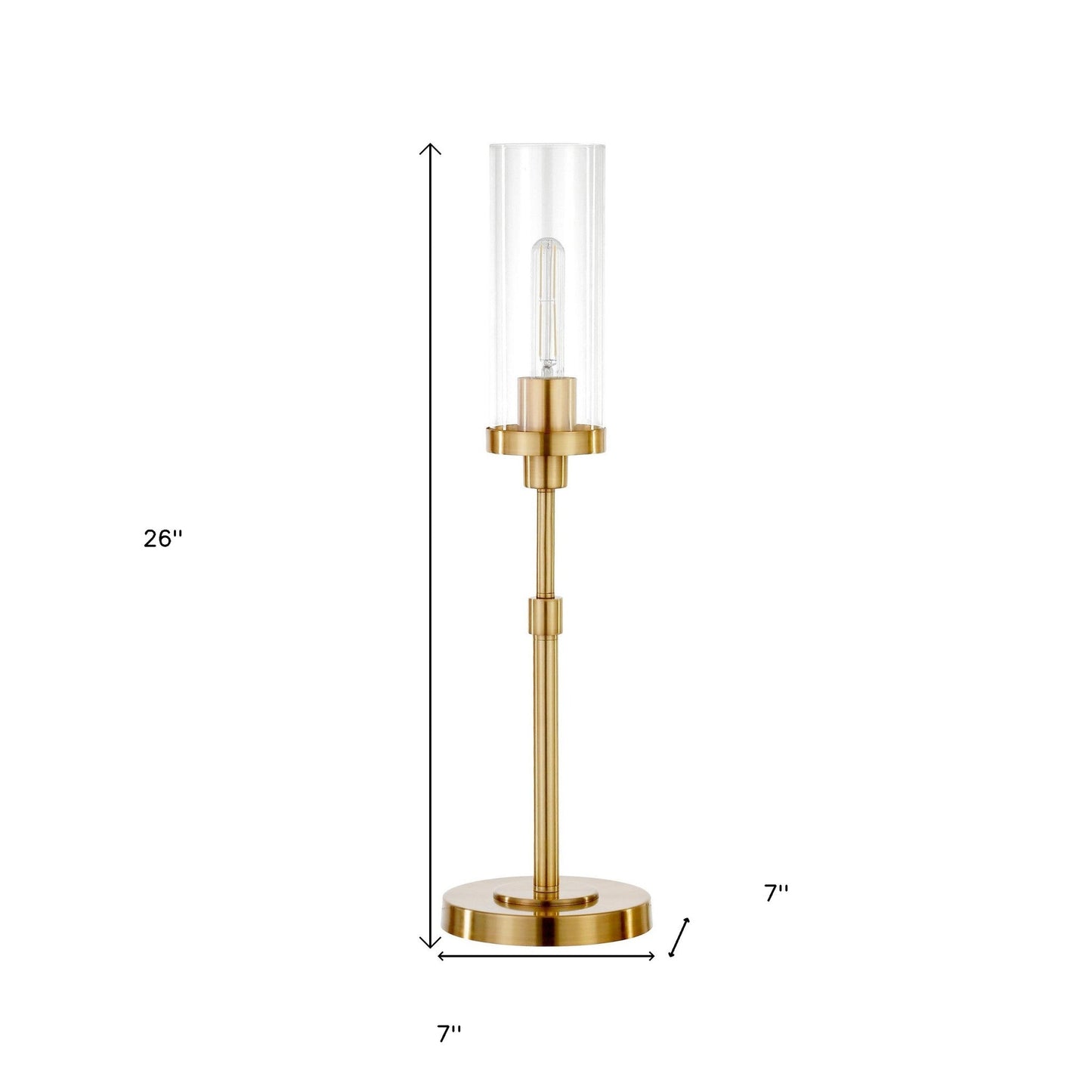 26" Brass Metal Buffet Lamp With Clear Cylinder Shade