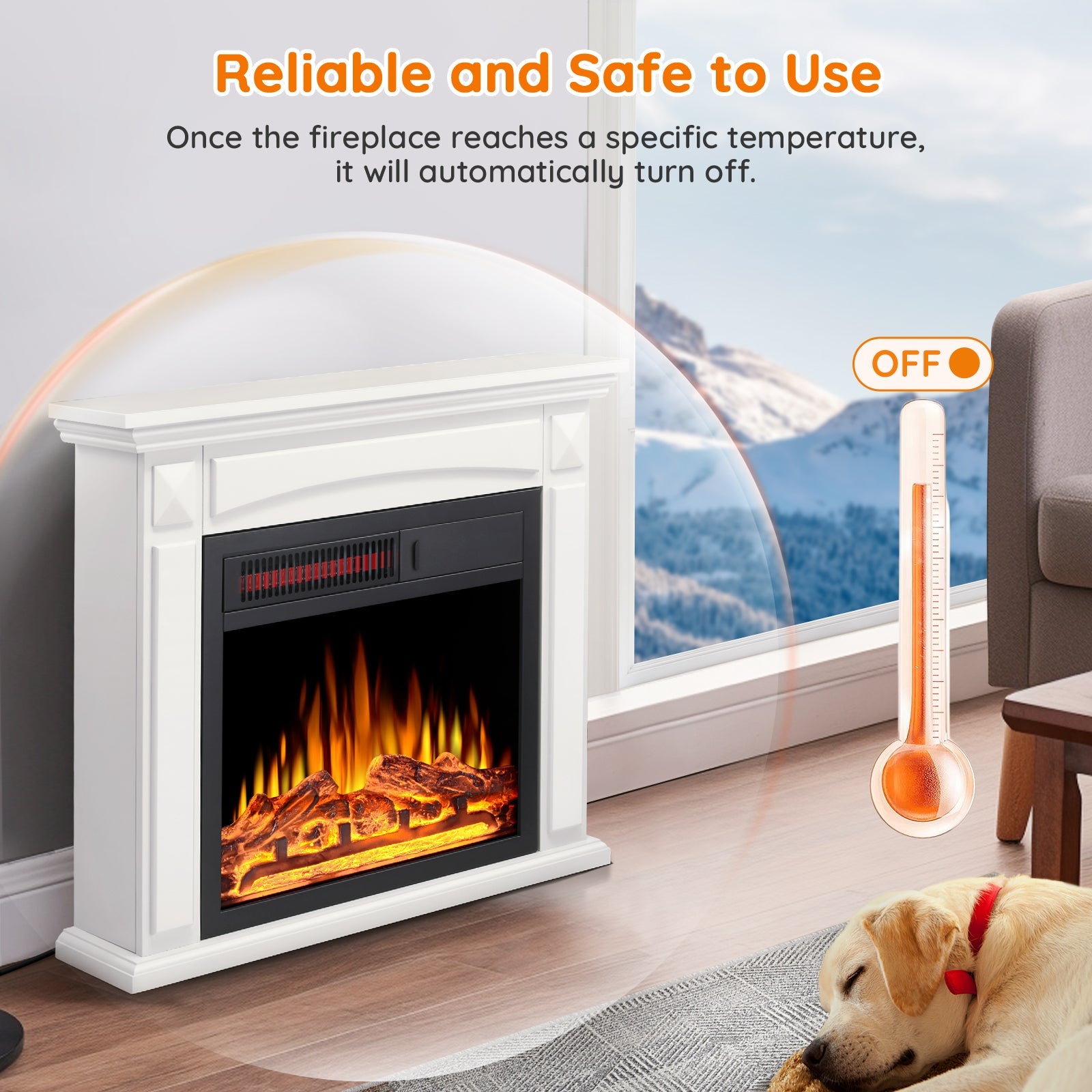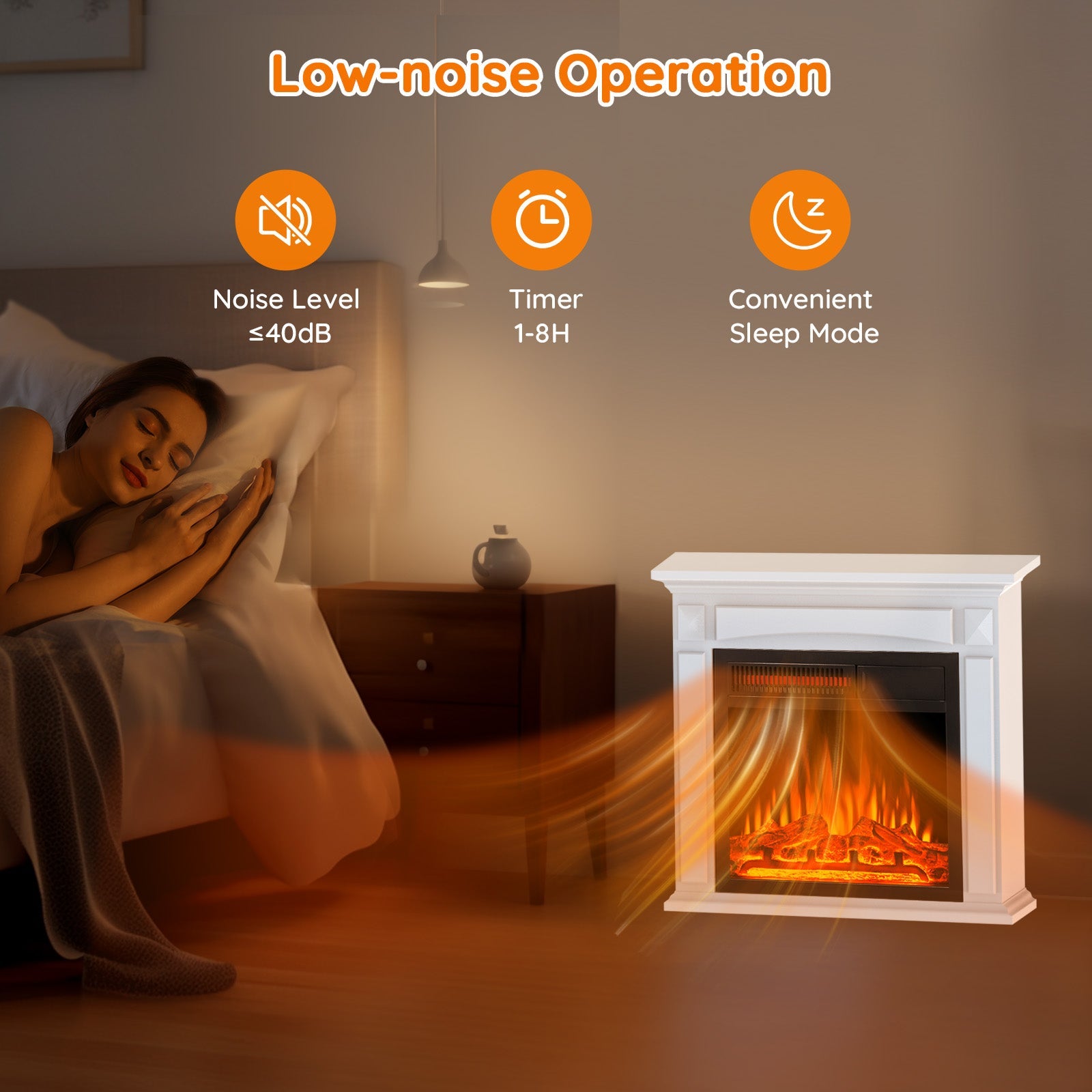 - [Wide Heating Range & Low Noise] Kismile electric fireplace logs with heater can heat up to 435 square feet of space, quickly dispersing heat throughout the room. This electric fireplace mantel with an overheating safety shut-off protection system has a noise level of less than 40dB, ensuring warmth while keeping the room quiet. Spend a warm and comfortable winter with this electric fireplace heater and your family!