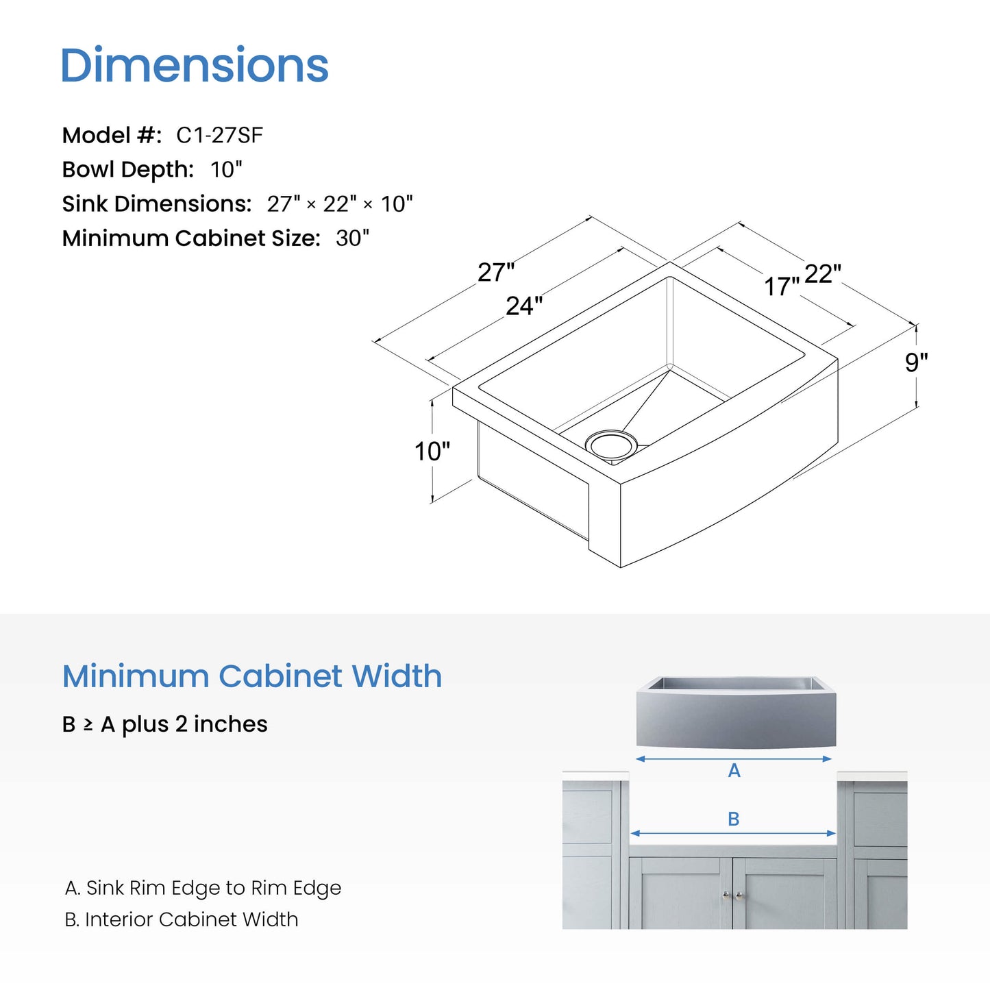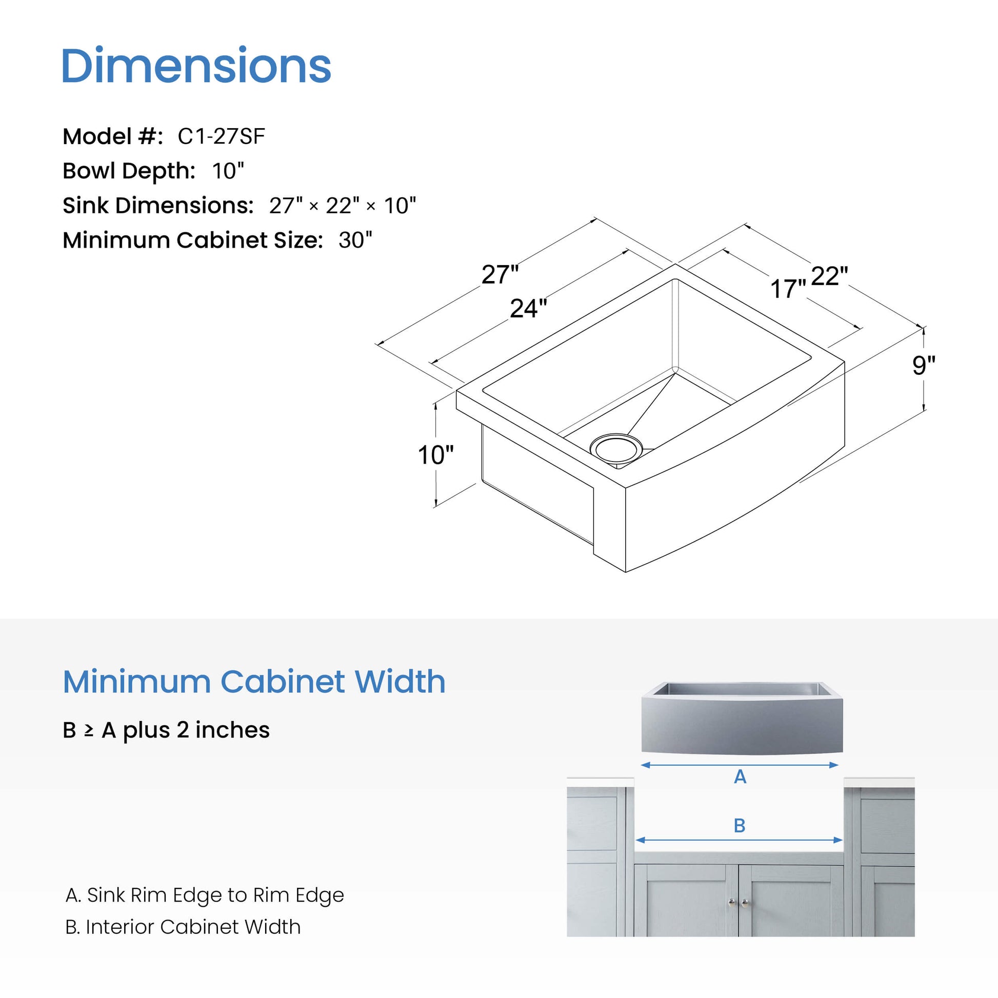 27" Handcrafted Farmhouse Apron Single Bowl Stainless Steel Kitchen Sink