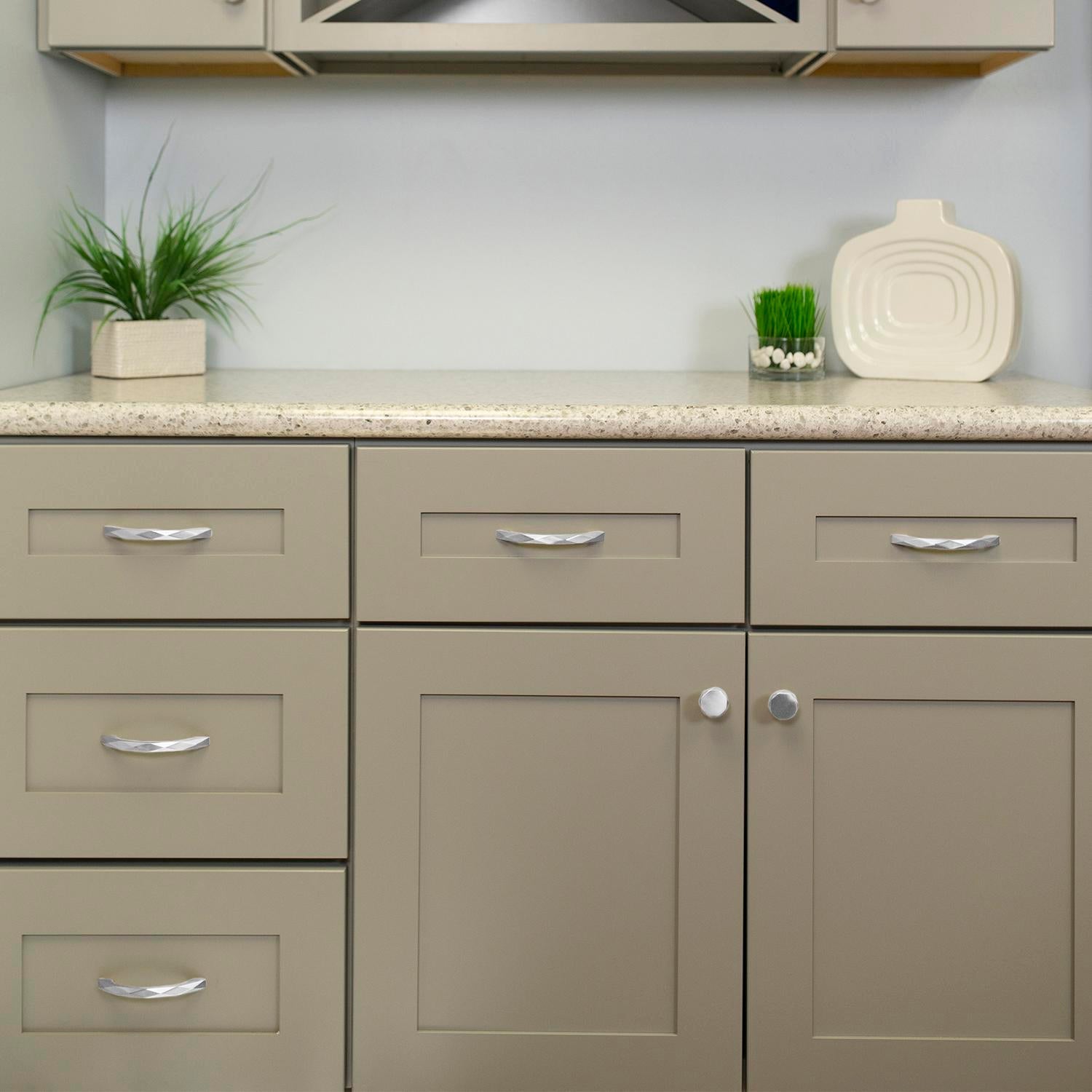 - The gentle arc of the pulls gives the collection a soft elegance.