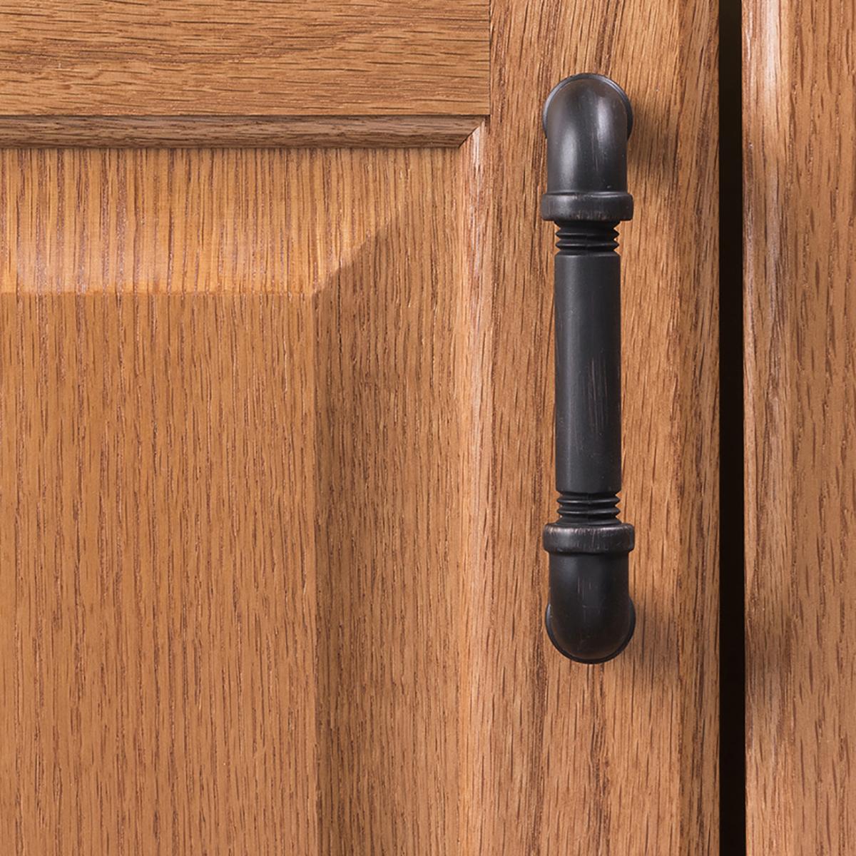 The Vintage Bronze finish coordinates with bronze and oil-rubbed bronze finishes. The deep brown tone features brushing that reveals a warm copper color, with a matte protective coating.