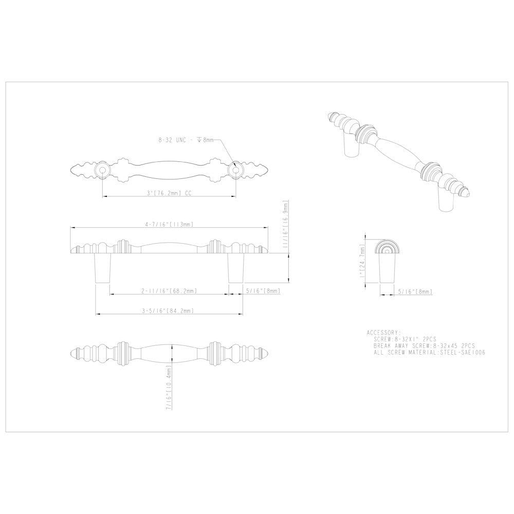 | Center to Center ?The distance between the center of one screw hole to the center of the other screw hole. | 3" |