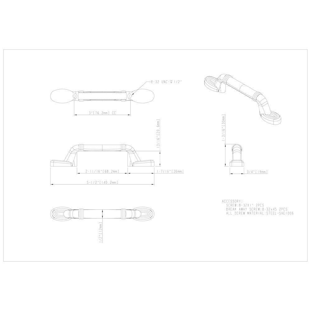 | Center to Center ?The distance between the center of one screw hole to the center of the other screw hole. | 3" |