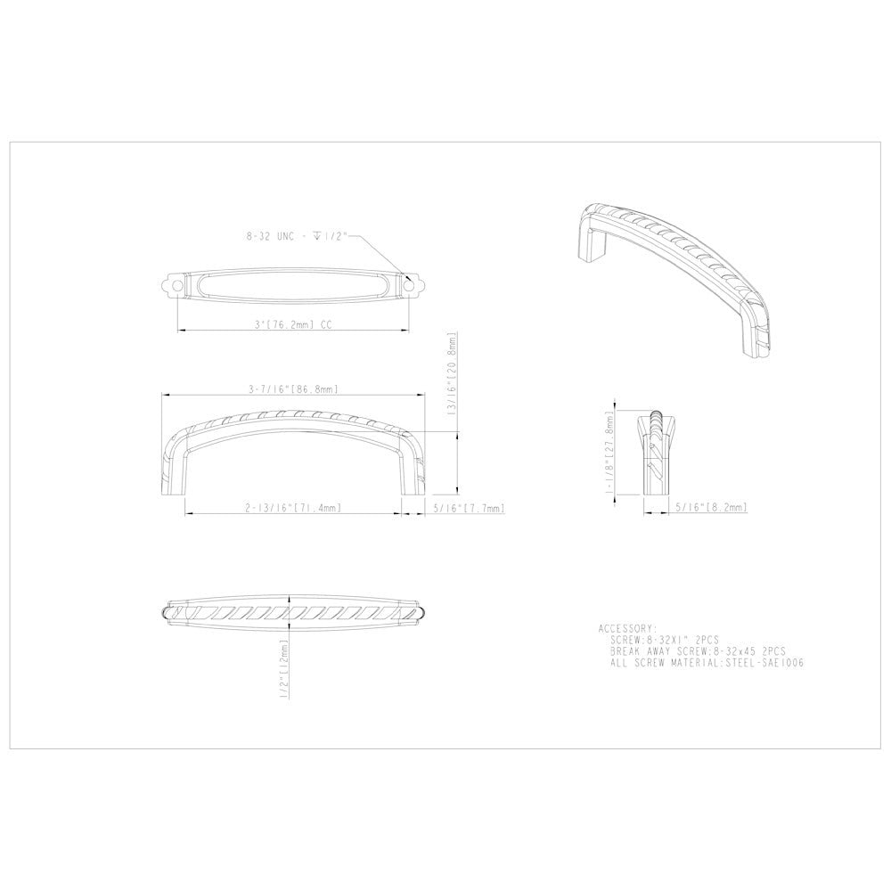 | Center to Center ?The distance between the center of one screw hole to the center of the other screw hole. | 3" |