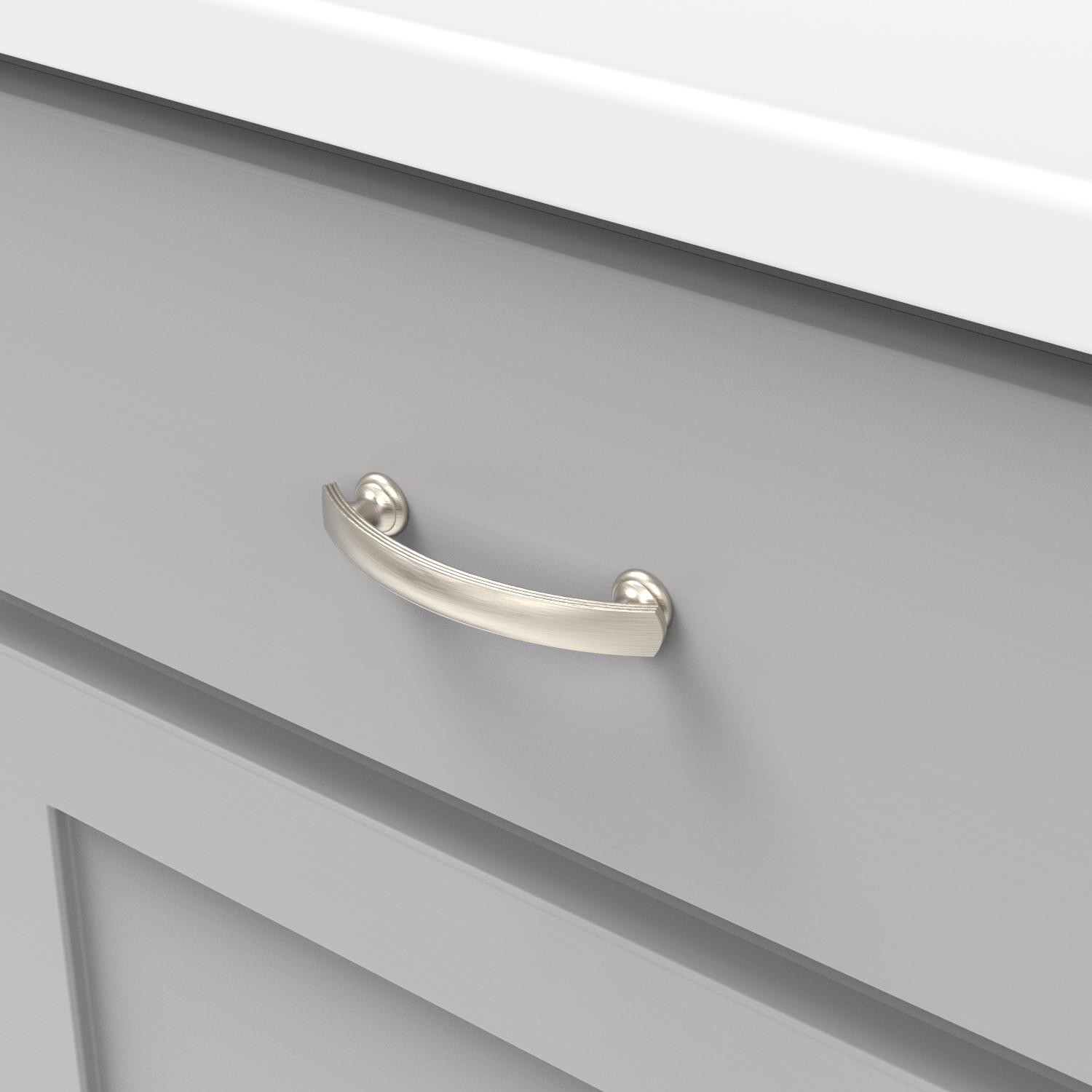 - The gentle arc of the pulls gives the collection a soft elegance.