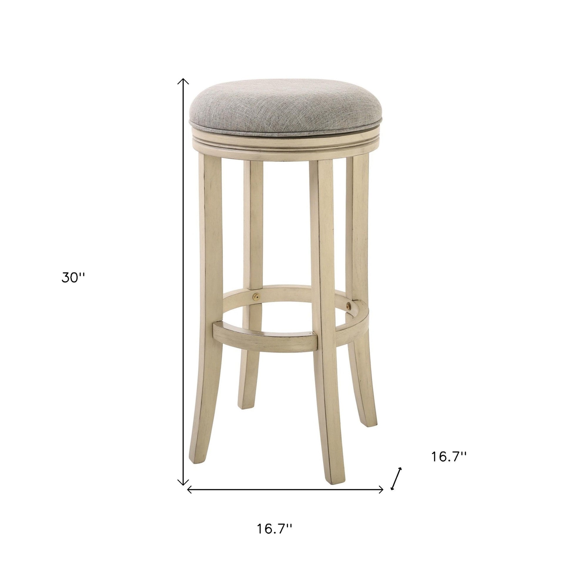 30" Gray and Ivory Fabric and Solid Wood Backless Bar Height Swivel Bar Chair