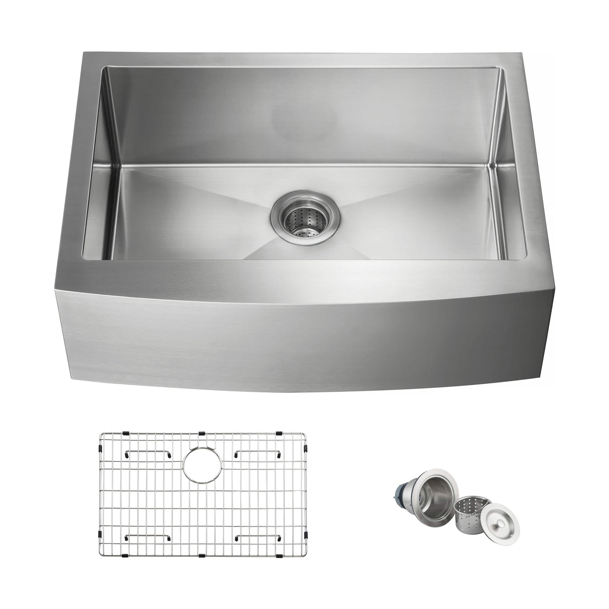 INCLUDED: Stainless Steel Kitchen Sink, Basin Rack/Bottom Grid, Basket Strainer. NOT INCLUDED: Trap/Water trap.