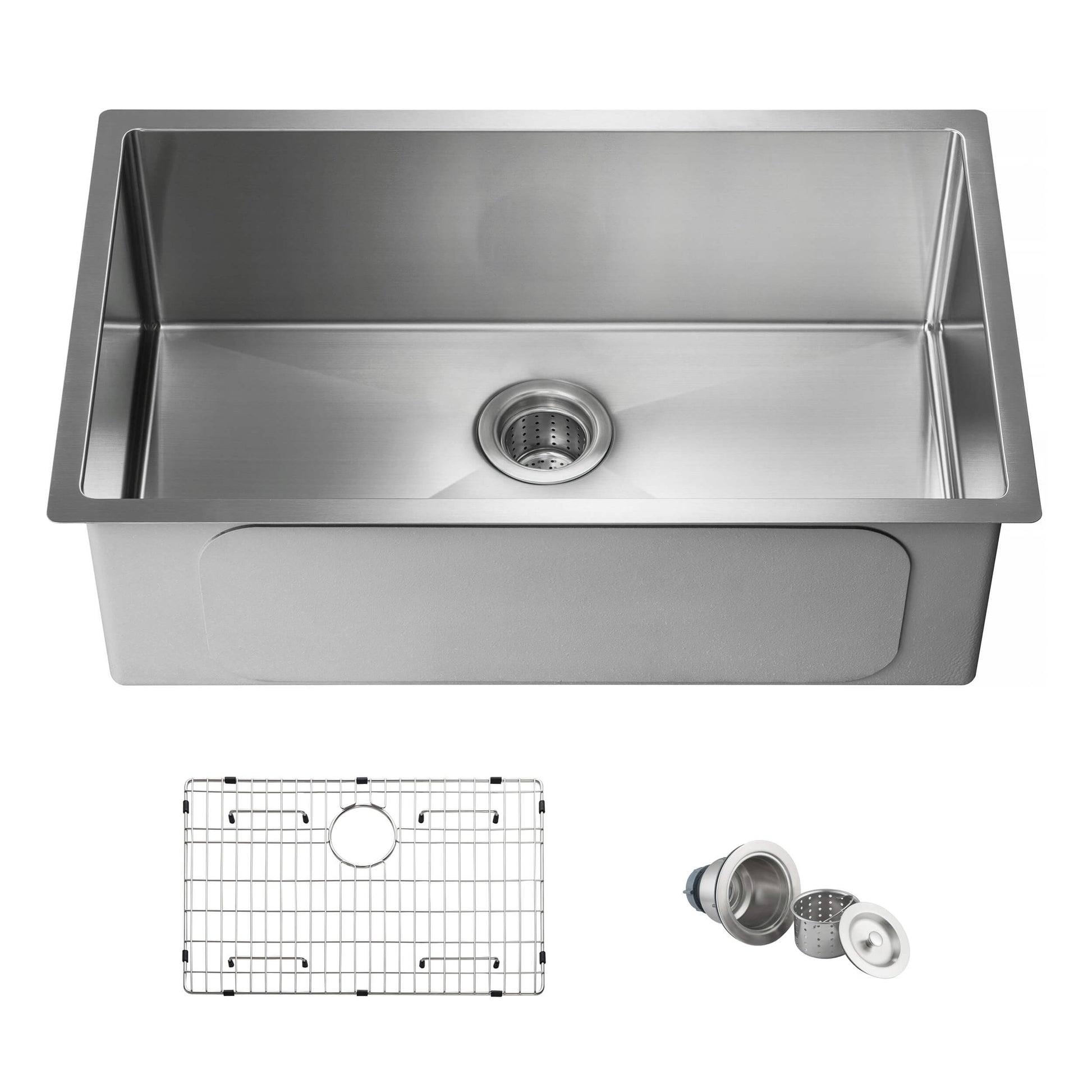 30" Handcrafted Undermount Single Bowl 16 gauge Stainless Steel Kitchen Sink