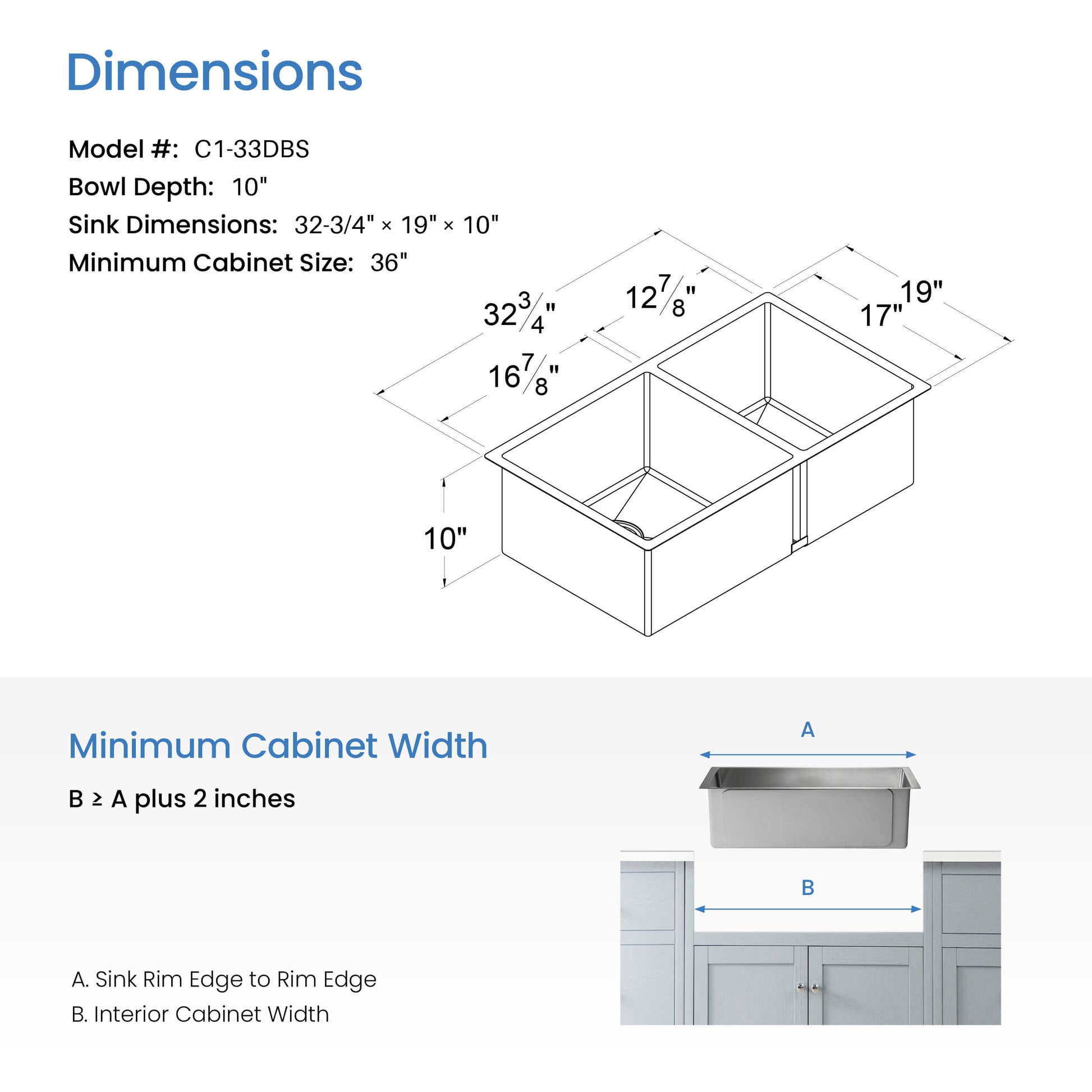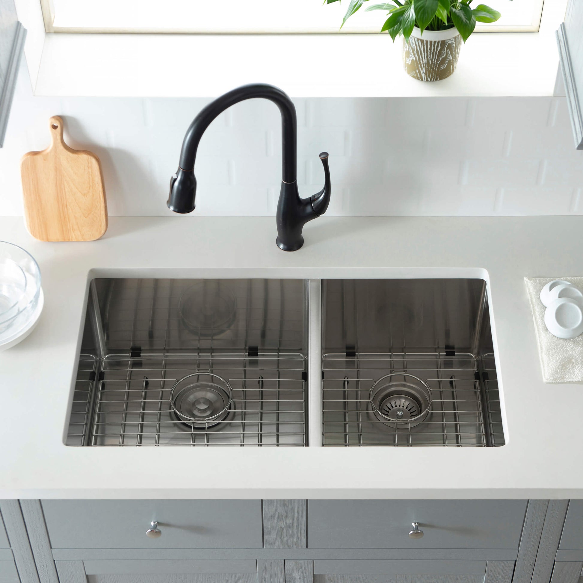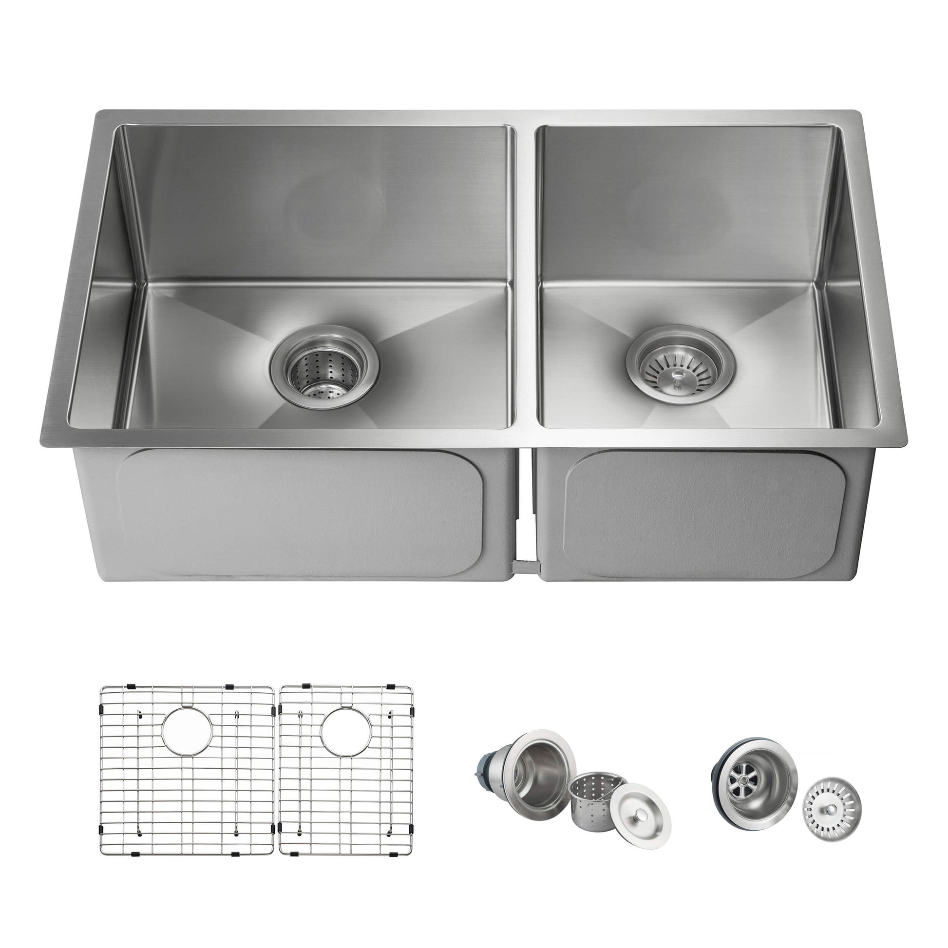 32 3/4" Handcrafted Undermount Double Bowl Stainless Steel Kitchen Sink