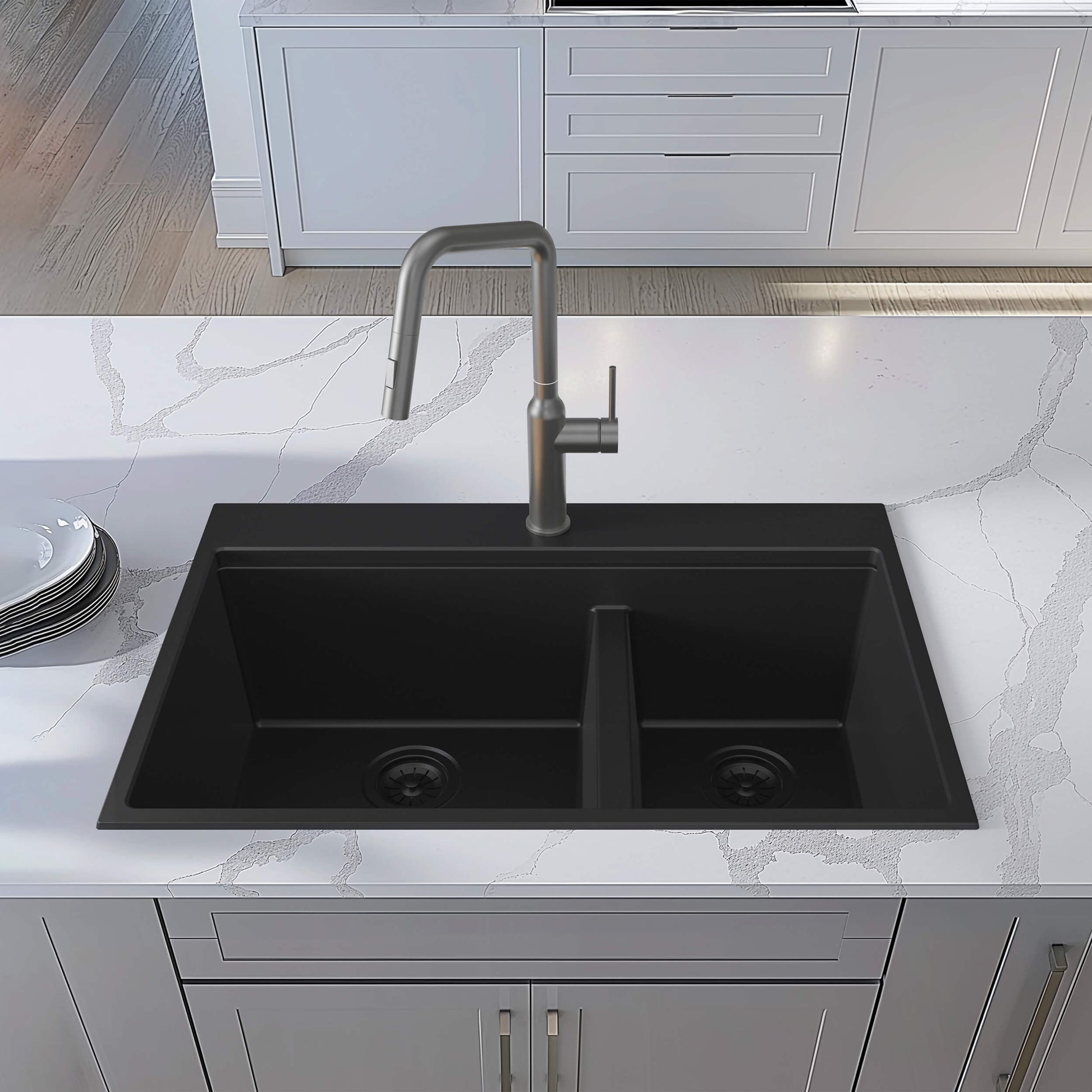 33" Top-Mount Workstation Double Bowl Quartz Kitchen Sink