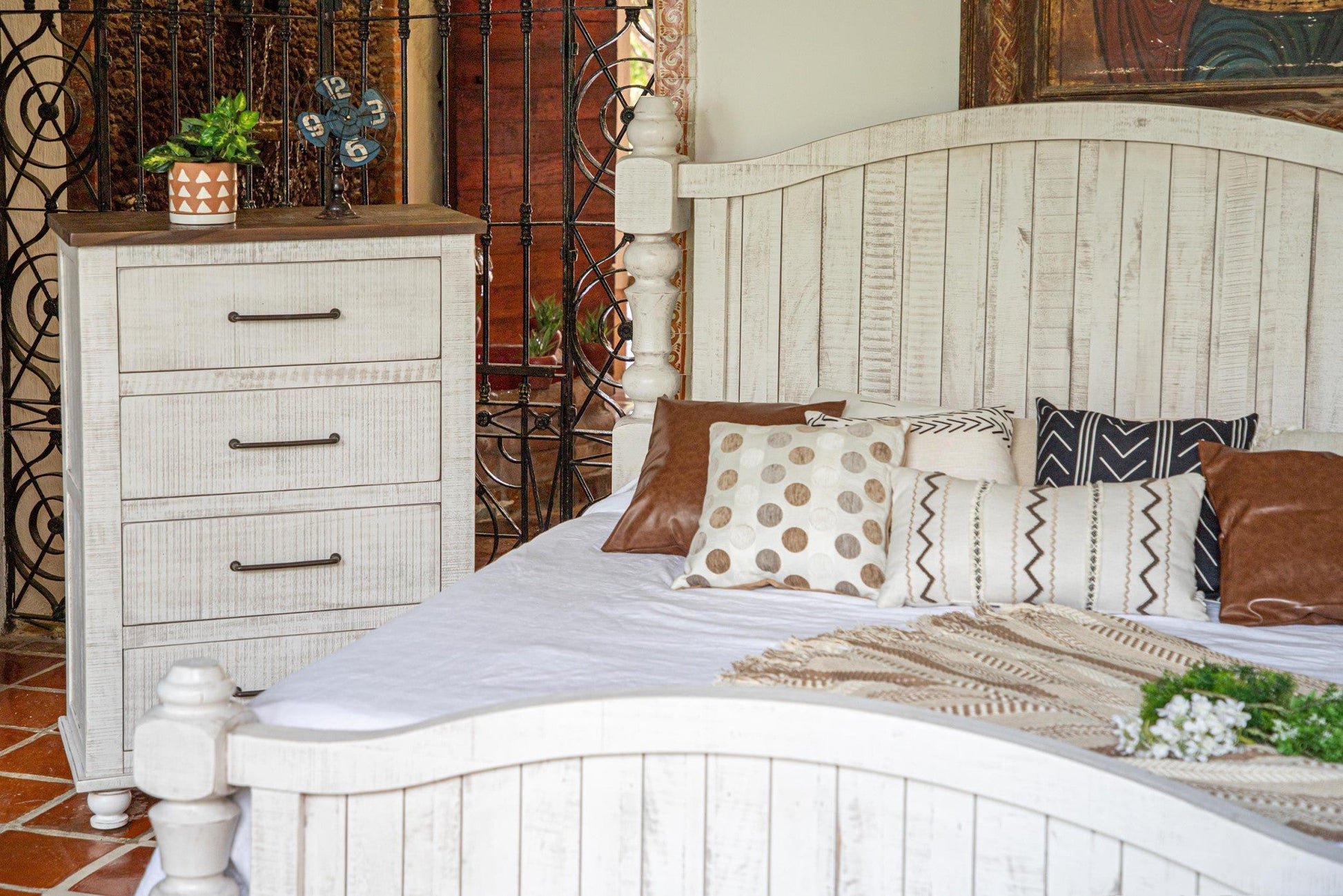 36" Brown and White Solid Wood Four Drawer Chest