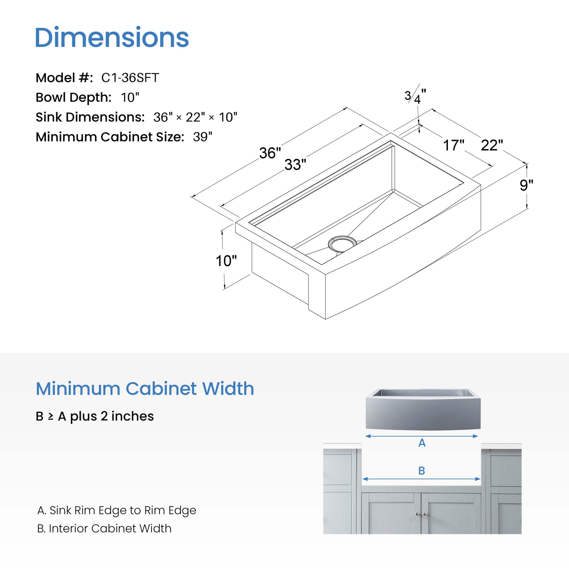 36" Farmhouse Apron Single Bowl Stainless Steel Workstation Kitchen Sink