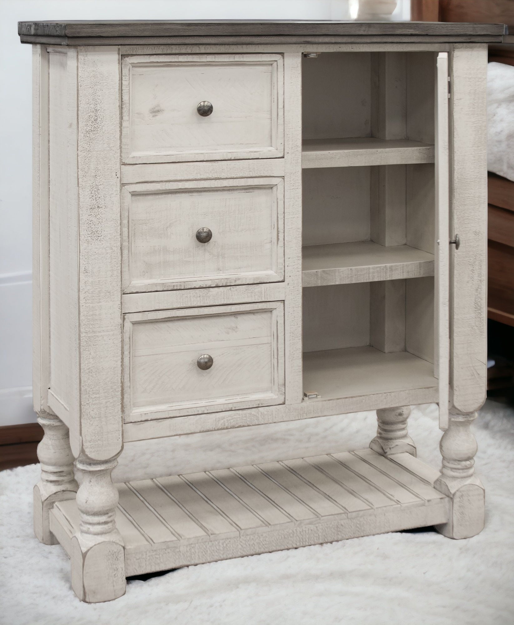39" Gray and Ivory Solid Wood Three Drawer Chest