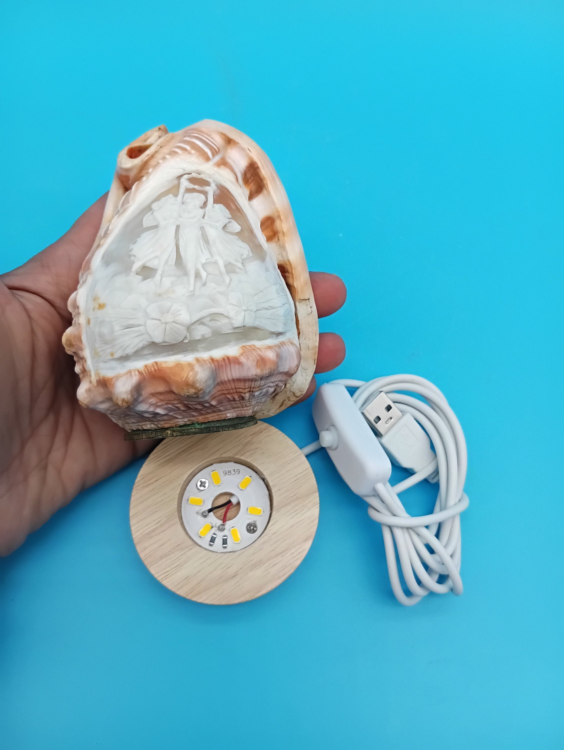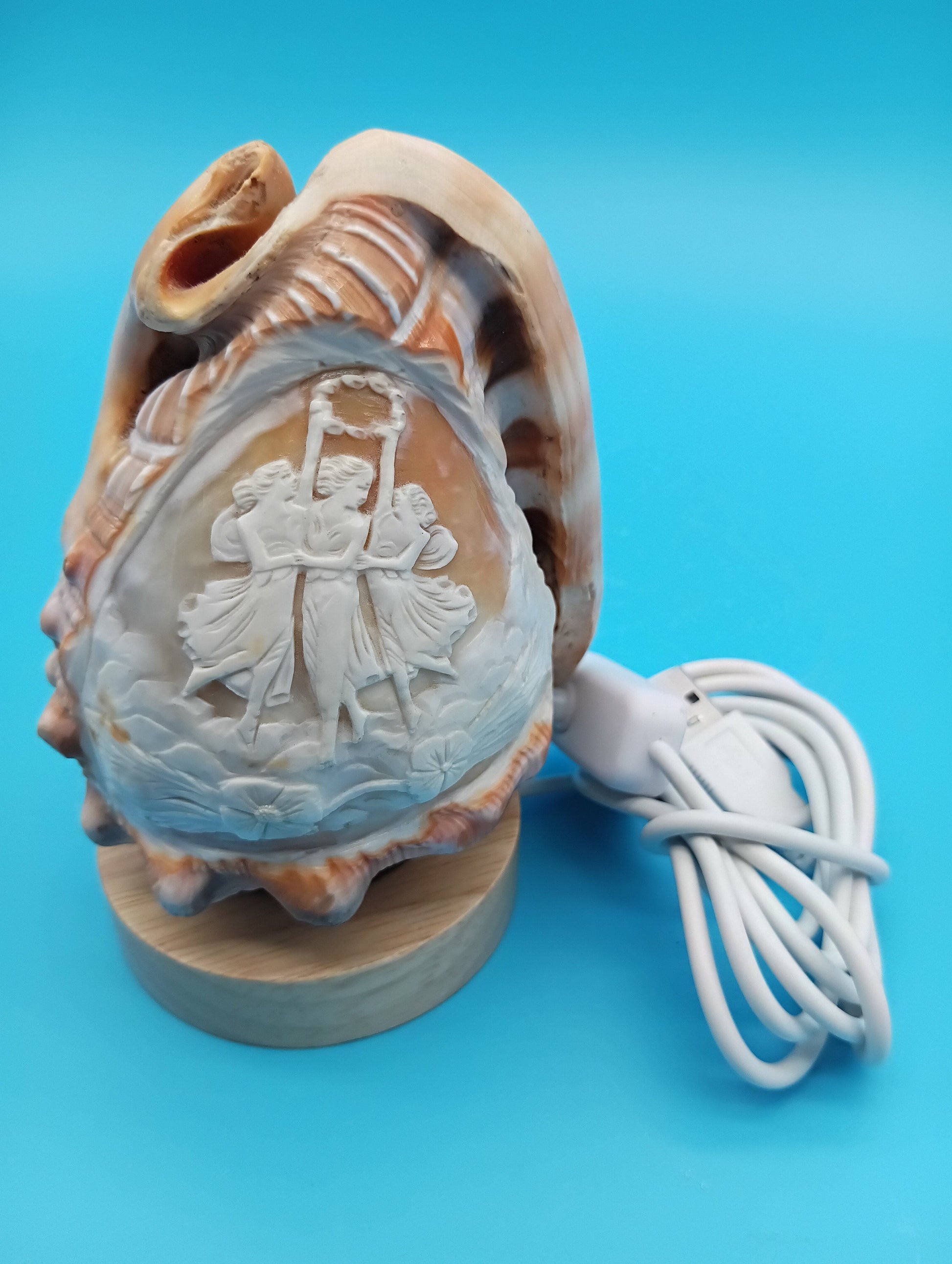 This piece is unique and adds a warm, coastal-inspired glow to any setting. Whether used as a night light, desk accessory, or conversation piece, this carved cameo light brings artistry and charm to your space.