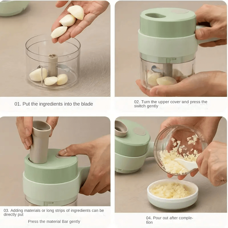 4 in 1 Handheld Electric Vegetable Cutter – Chop, Slice, Shred & Clean with Ease
