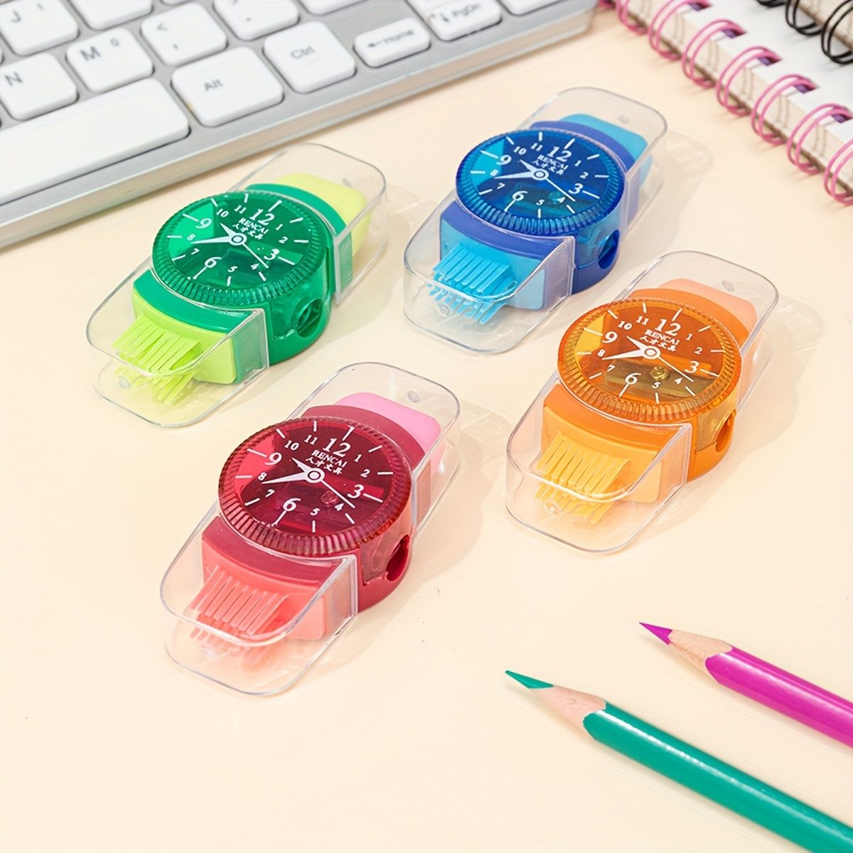 4pcs Creative Watch Shape Pencil Sharpener With Eraser Cleaning Brush 3 In 1 Multifunctional Student Stationery