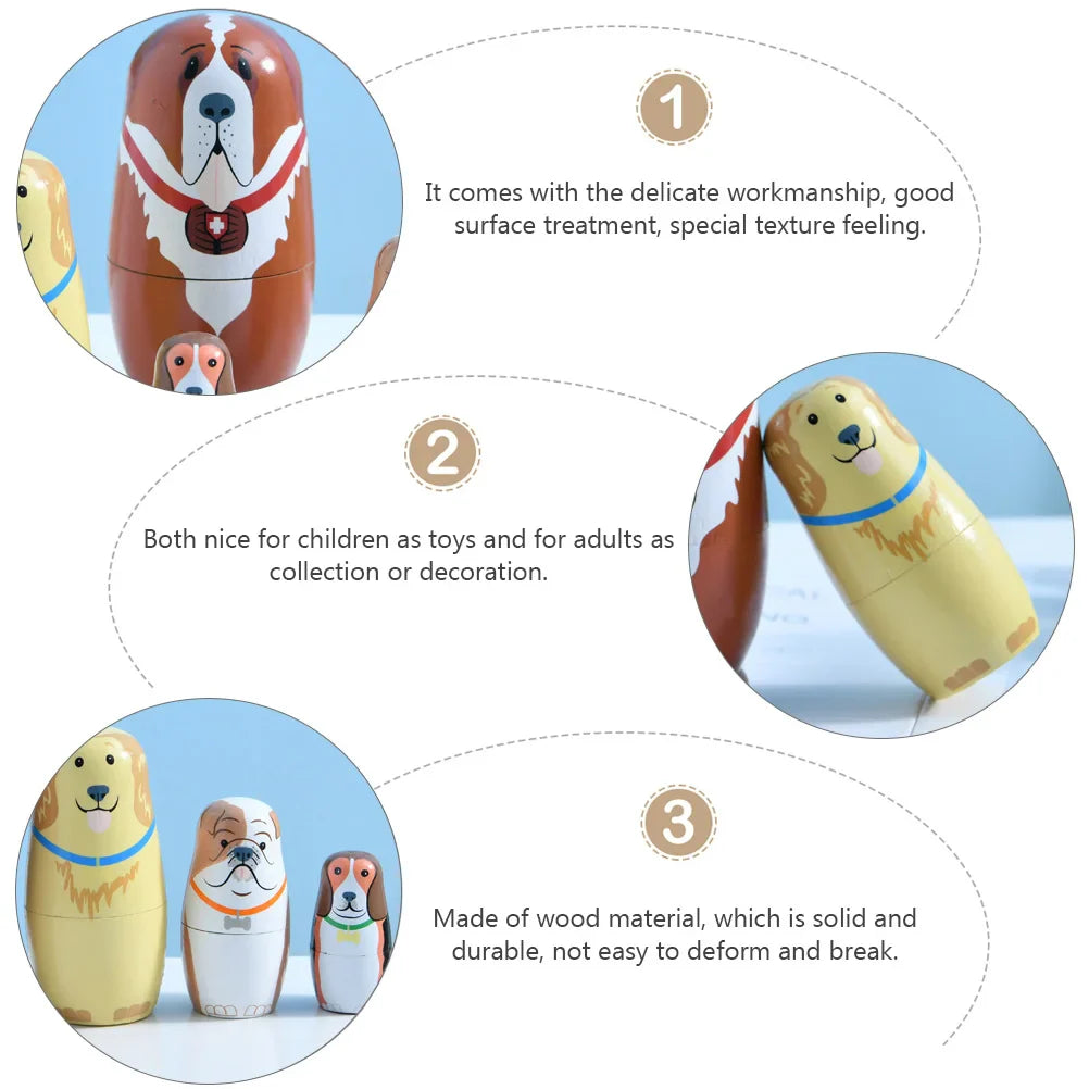 - Cartoon pet dog pattern matryoshka , adorable and beautiful, with 5 different size, which is funny to play.