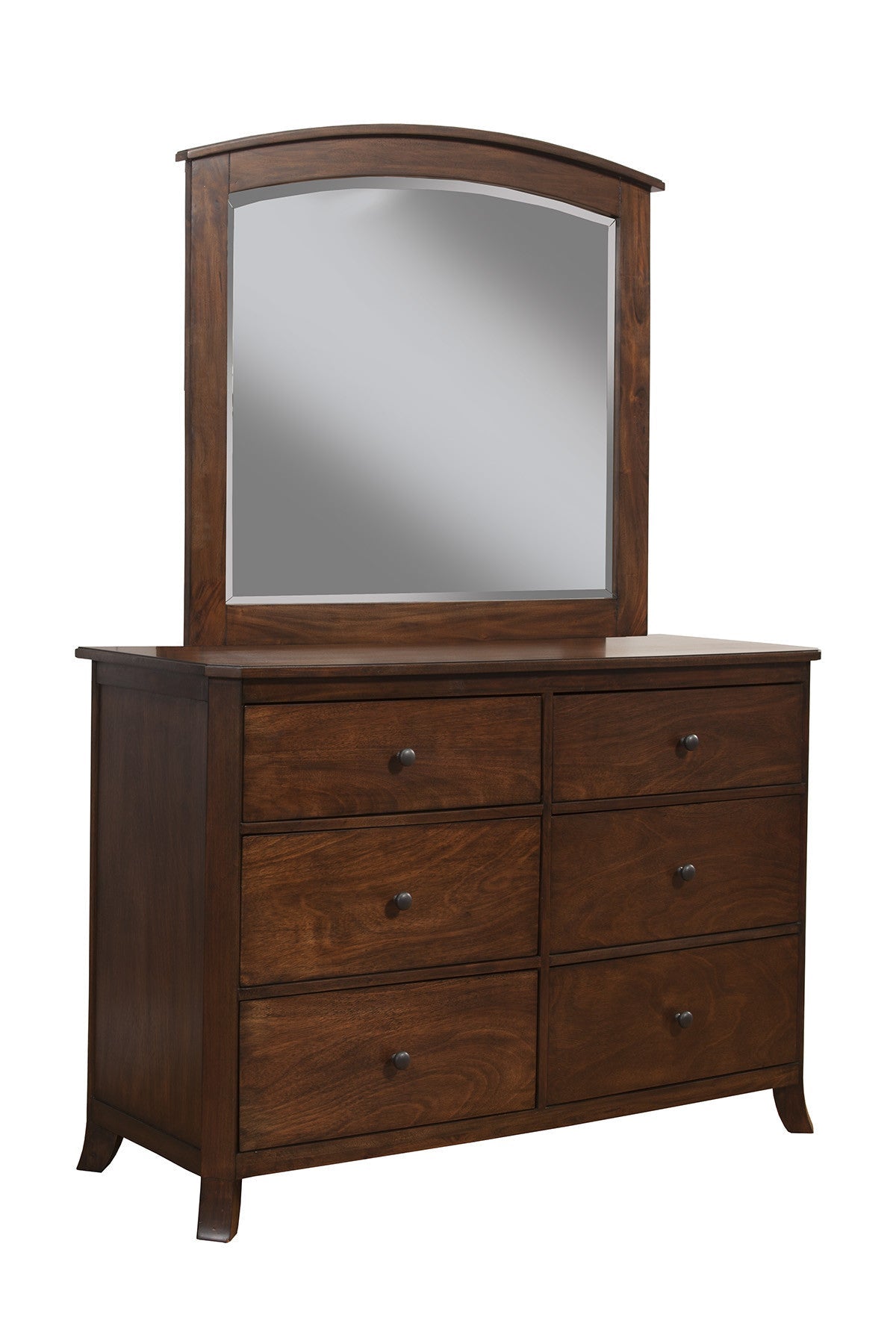 Make your room functional and visually enticing with this masterful 52" brown solid wood six drawer double dresser. This horizontal double dresser has column style drawers and a wide top surface area to help you with your daily dressing essentials. Loaded with capacity, this piece is equipped with six easy open drawers for practical and good looking clothing storage. This dresser is built to last from high quality solid wood,. 36" H x 52" W x 18" D