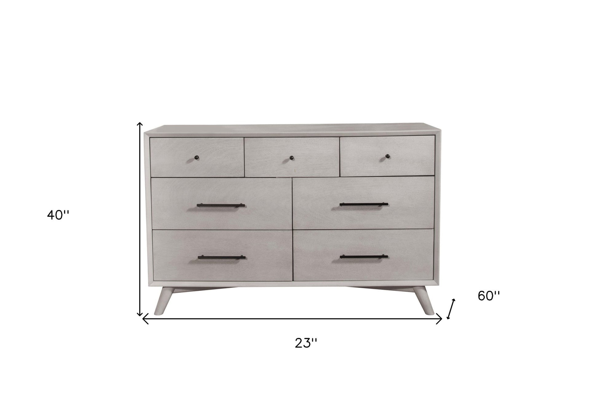 59" Gray Solid Wood Seven Drawer Double Dresser