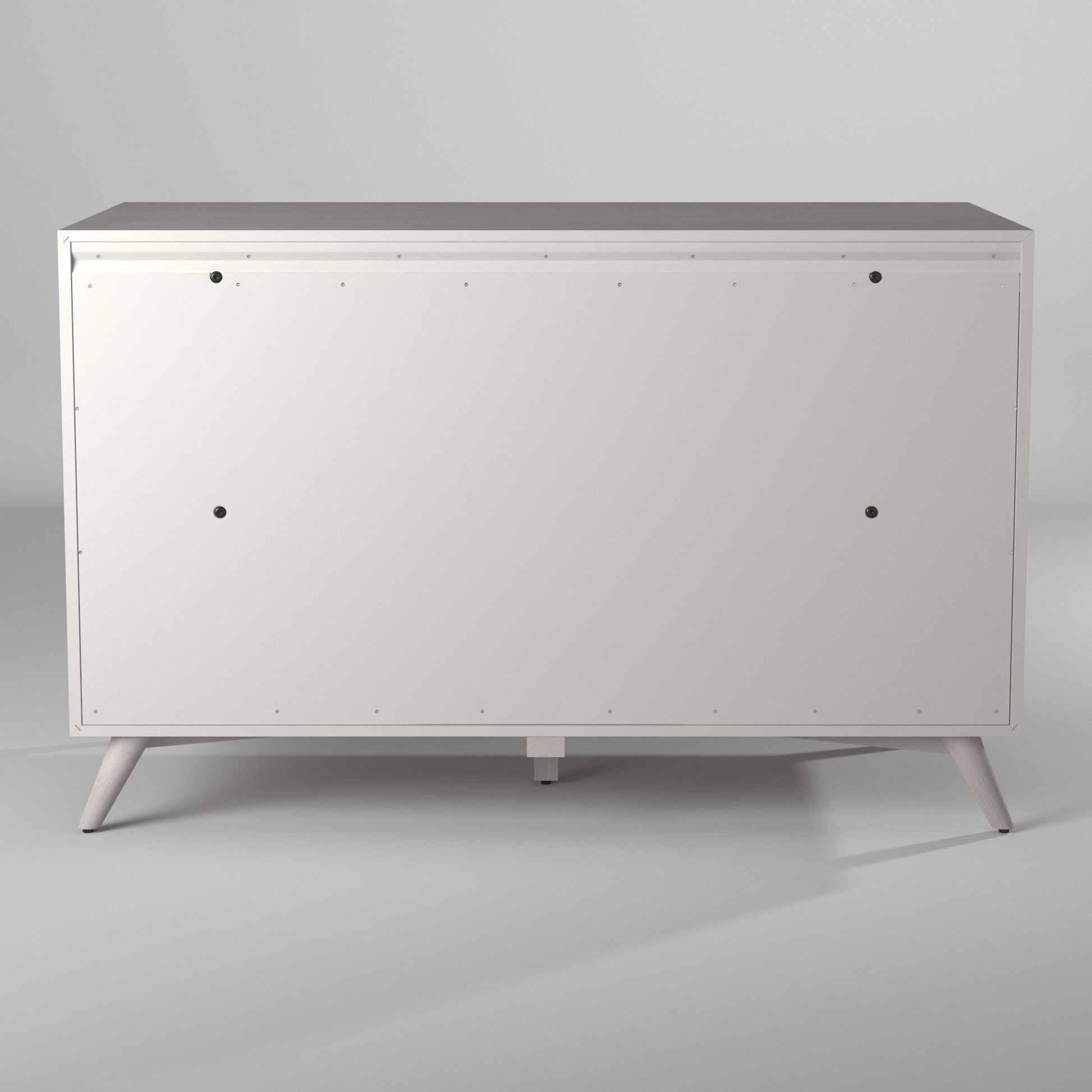Enhance your room into a visually delightful and highly functional space with this 59" gray solid wood seven drawer double dresser. Designed for you to stand in front of and get ready, this horizontal double dresser has a convenient and wide top area for your getting ready needs and supplies. Loaded with capacity, this piece is equipped with seven easy open drawers for practical and good looking clothing storage. This dresser is built to last from high quality solid wood, The gray coloration of this piece is neutral and will blend easily with most any decor. 36.5" H x 59" W x 19" D