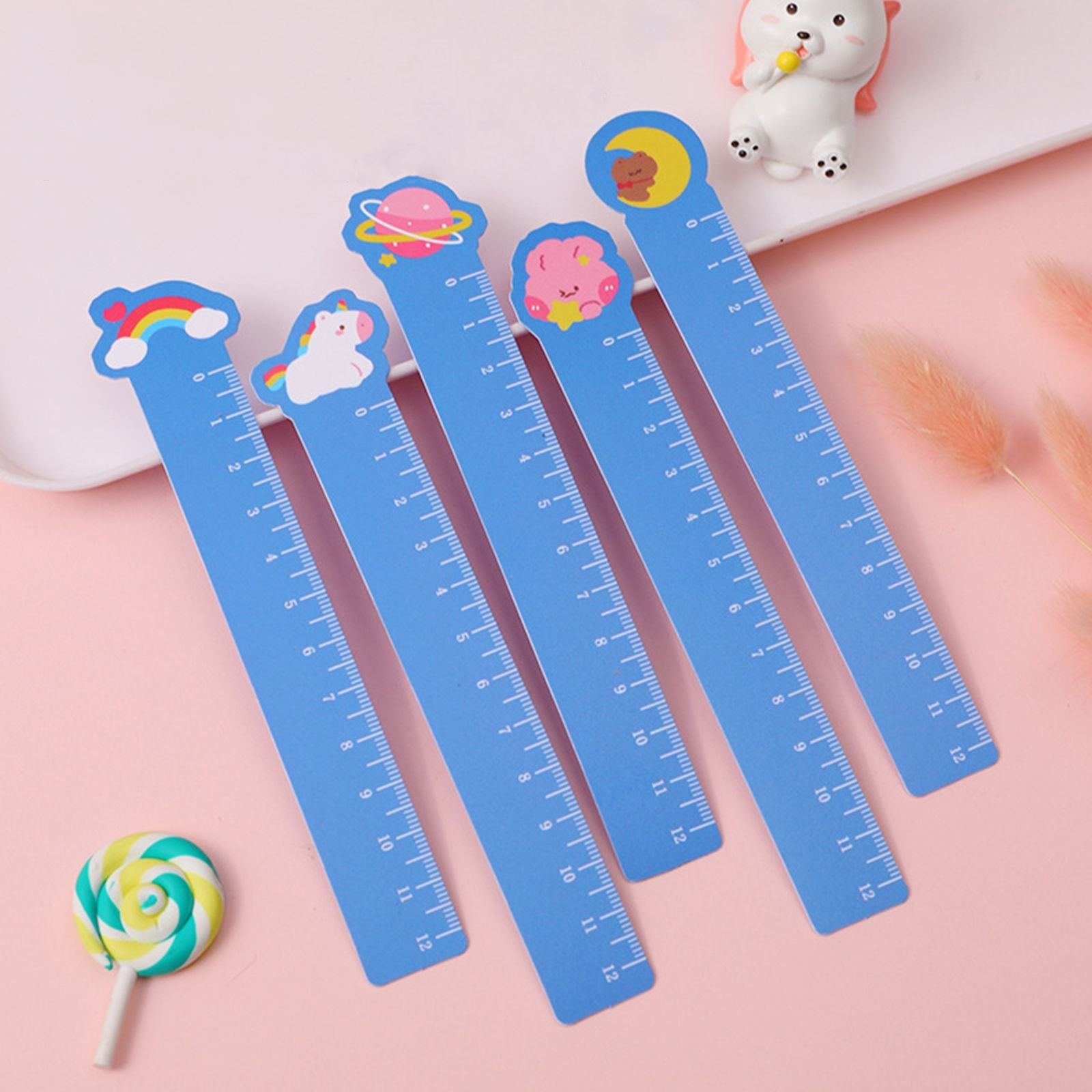 5pcs Cute Animal Ultra-thin Soft Ruler Combination 1.1-6 Inches PP Material