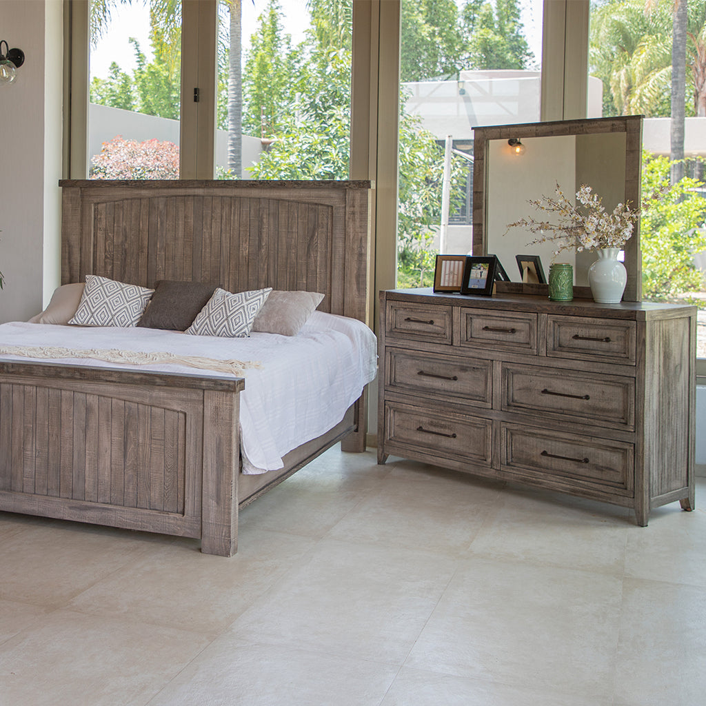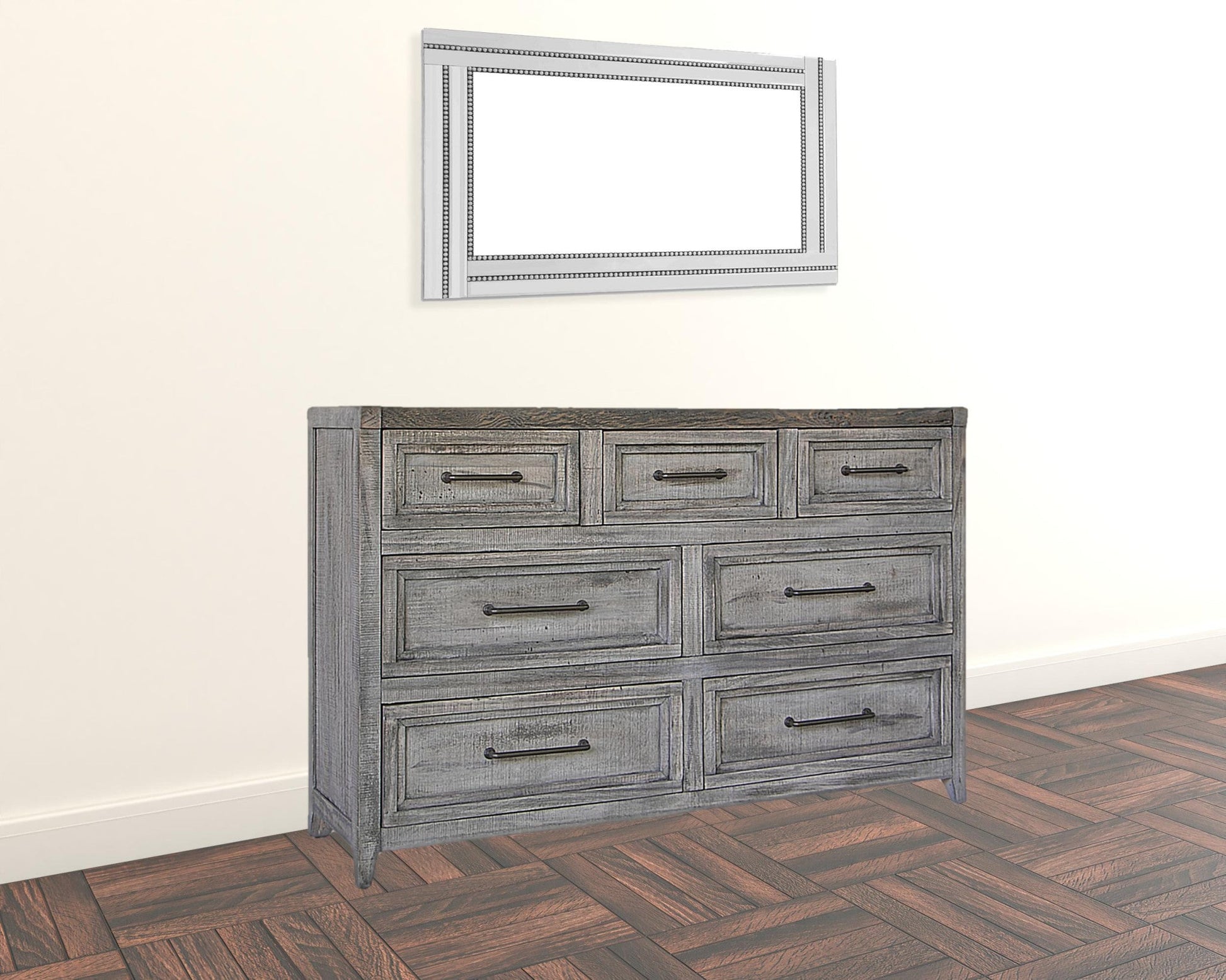 Make your room functional and visually enticing with this masterful 62" brown solid wood seven drawer double dresser. This horizontal double dresser has column style drawers and a wide top surface area to help you with your daily dressing essentials. Loaded with capacity, this piece is equipped with seven easy open drawers for practical and good looking clothing storage. This dresser is built to last from high quality solid wood,. 39.5" H x 61.5" W x 18" D
