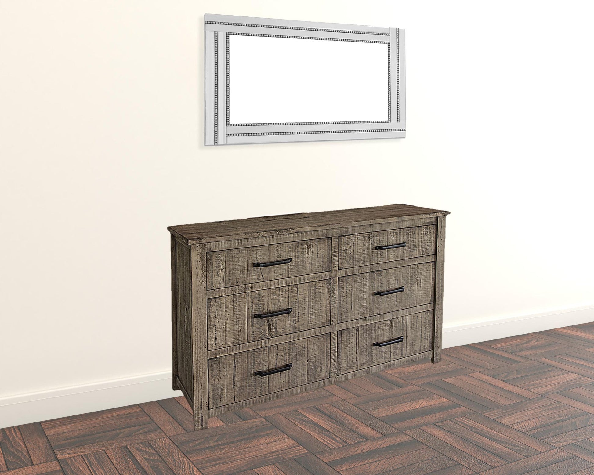 This 62" brown solid wood six drawer double dresser is a practical and good looking accent for your bedroom storage and organizational needs. This horizontal double dresser has column style drawers and a wide top surface area to help you with your daily dressing essentials. Loaded with capacity, this piece is equipped with six easy open drawers for practical and good looking clothing storage. This dresser is built to last from high quality solid wood,. 38.5" H x 61.5" W x 18" D