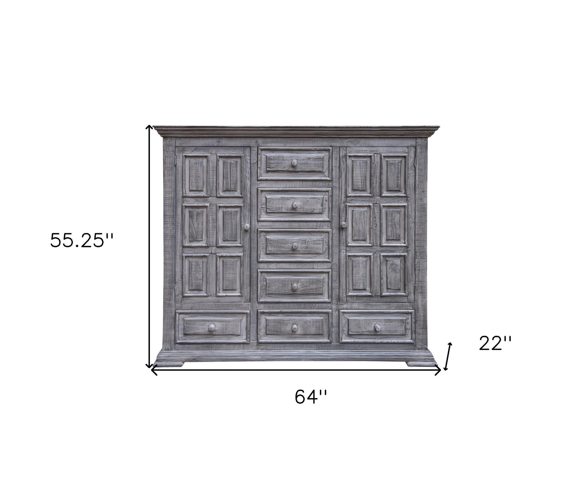 64" Gray Solid Wood Seven Drawer Gentlemans Chest