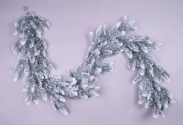6'L FLOCKED NOBLE FIR GARLAND DK GREEN/WHITE Spray