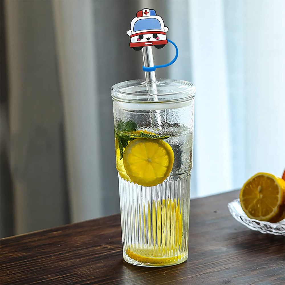 6pcs Reusable Nurse Theme Straw Covers - Dust-Proof Silicone Tips for 7-8 mm Straws - Easy to Clean and Convenient
