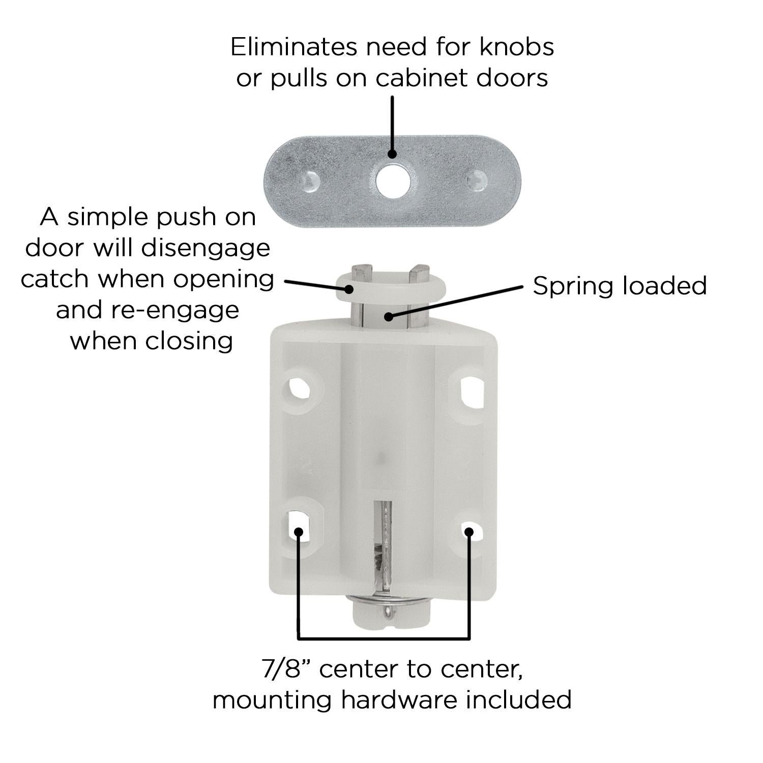 - A simple push on door will disengage catch when opening and re-engage when closing.