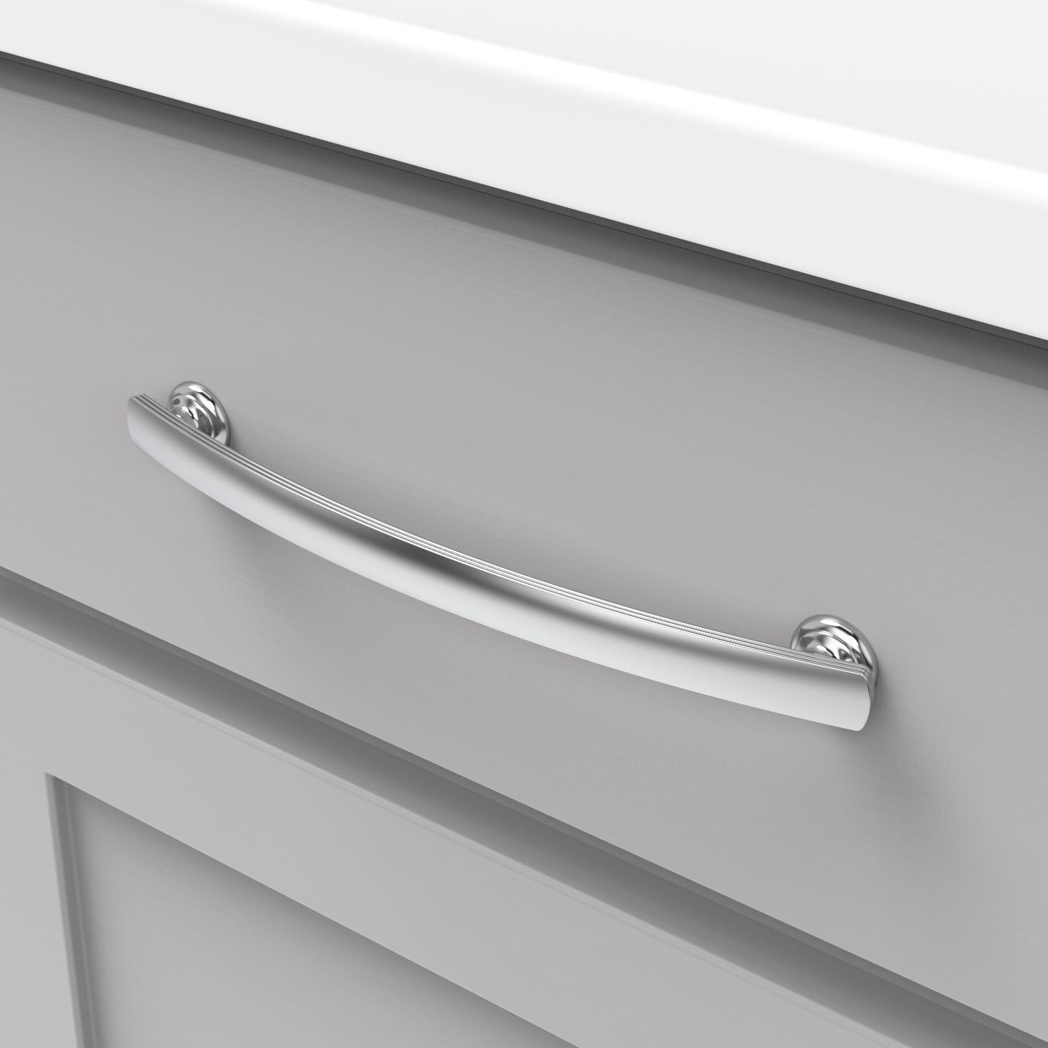 - The gentle arc of the pulls gives the collection a soft elegance.
