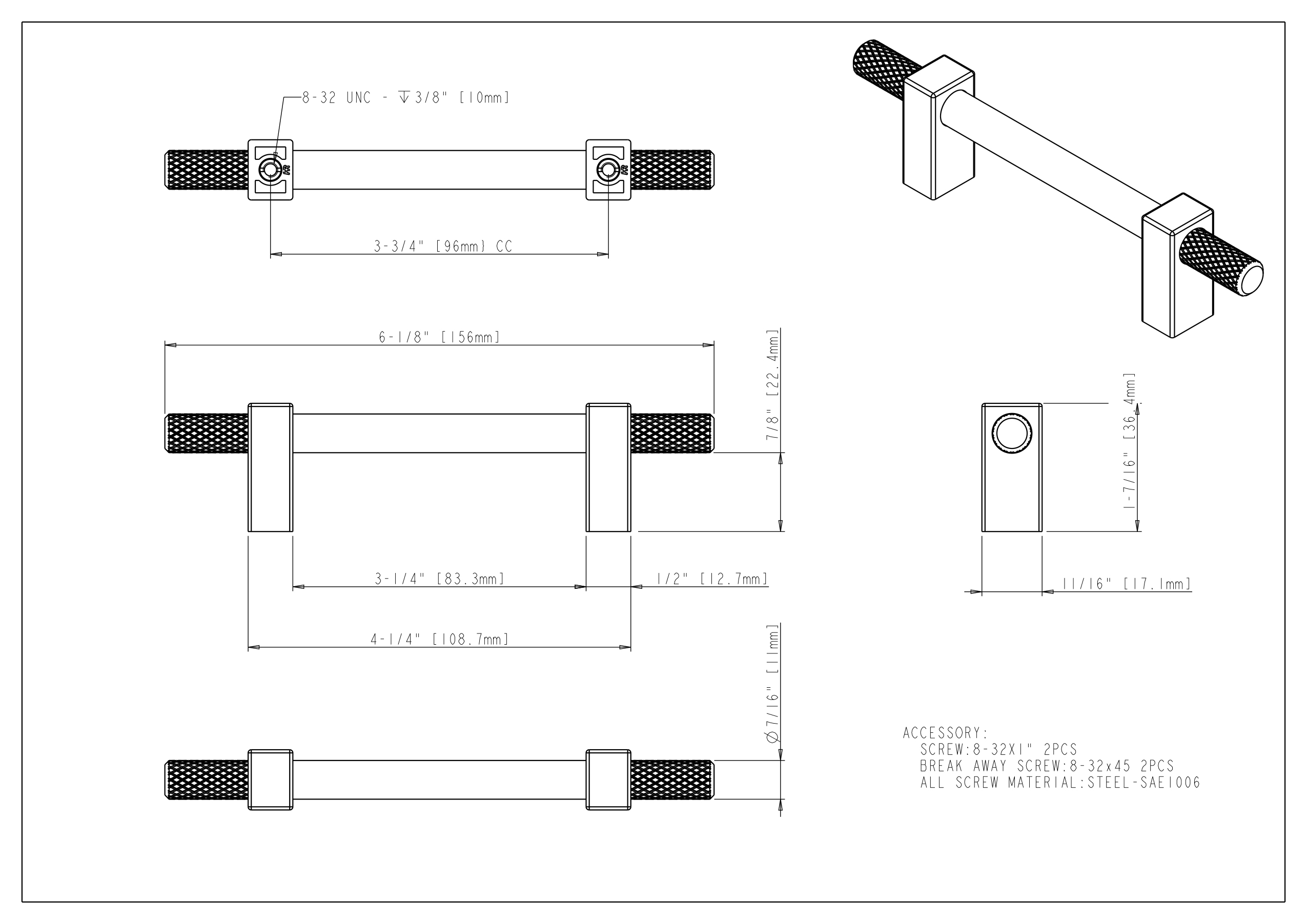 Edgy with undiluted style, Larkin from Jeffrey Alexander, makes a bold statement in solid finishes, mixed finishes, and two knurled options. The 6-1/8" overall length Satin Nickel knurled ends beveled bar pull pairs perfectly with its fierce squared foot to create a look that complements any style of cabinetry. Also available in a classic beveled bar (Larkin 1 & 2) or a beveled bar with knurled center (Larkin 3), four additional lengths, two appliance handle sizes, and a t-knob for a truly tailored look. Choose from five captivating finishes in Larkin 1, four mixed finishes in Larkin 2, or 4 finishes in the two knurled options of Larkin 3 & 4. Each item is individually wrapped to protect the item from damage. Attachment hardware is included.