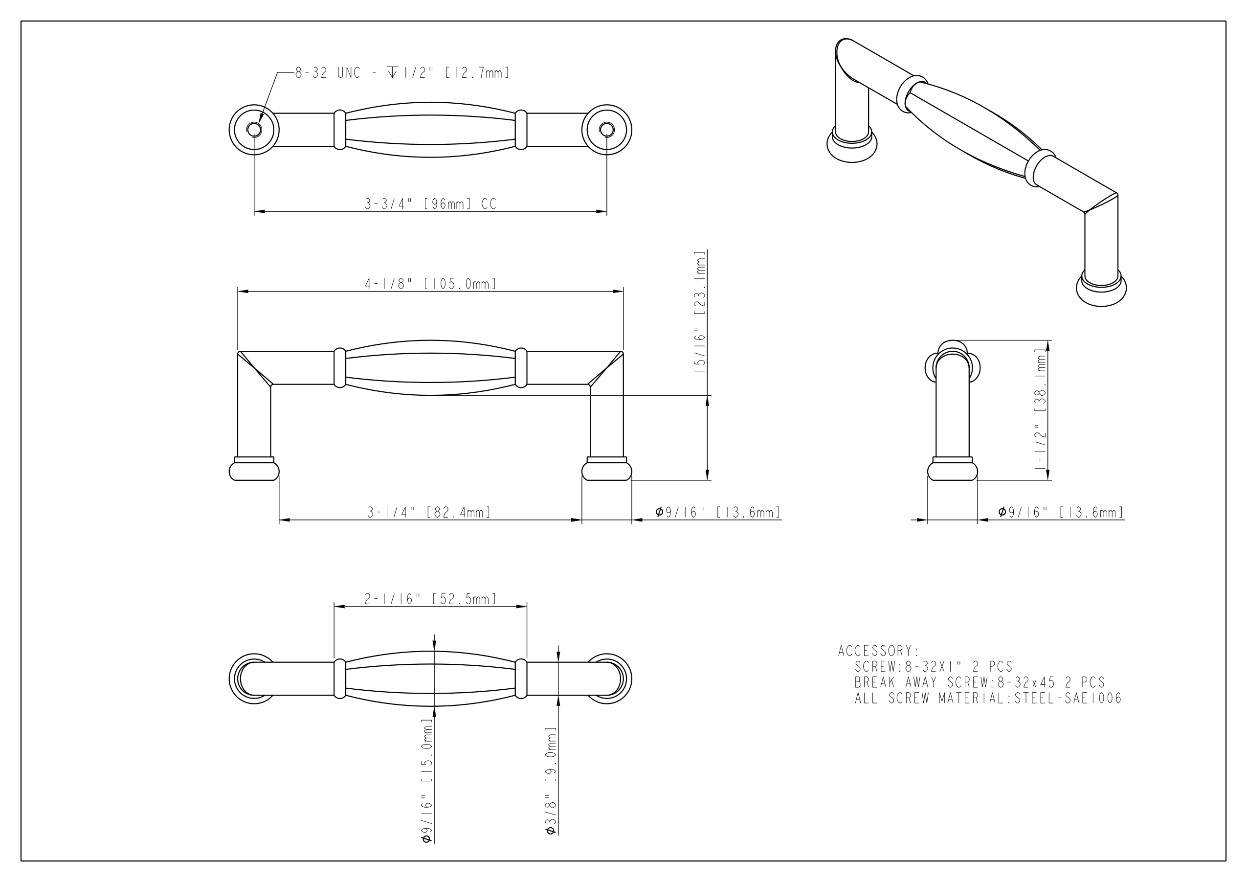| Center to Center ?The distance between the center of one screw hole to the center of the other screw hole. | 96 mm |