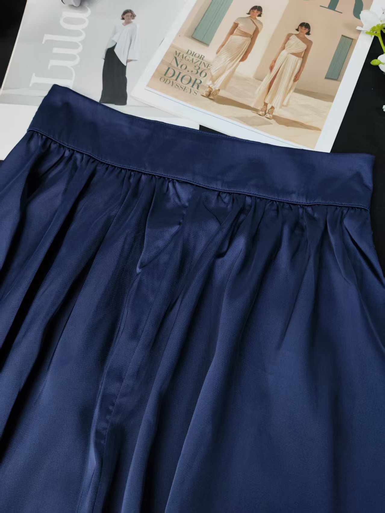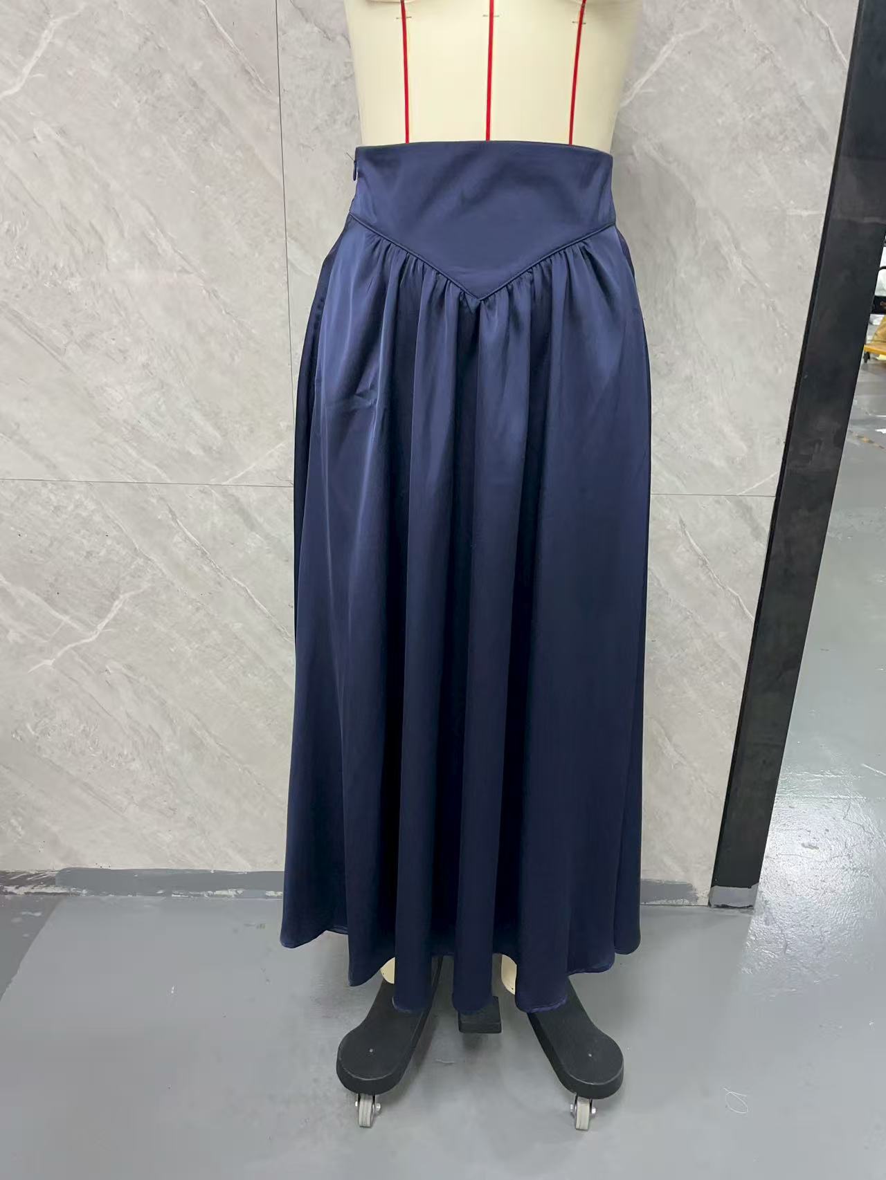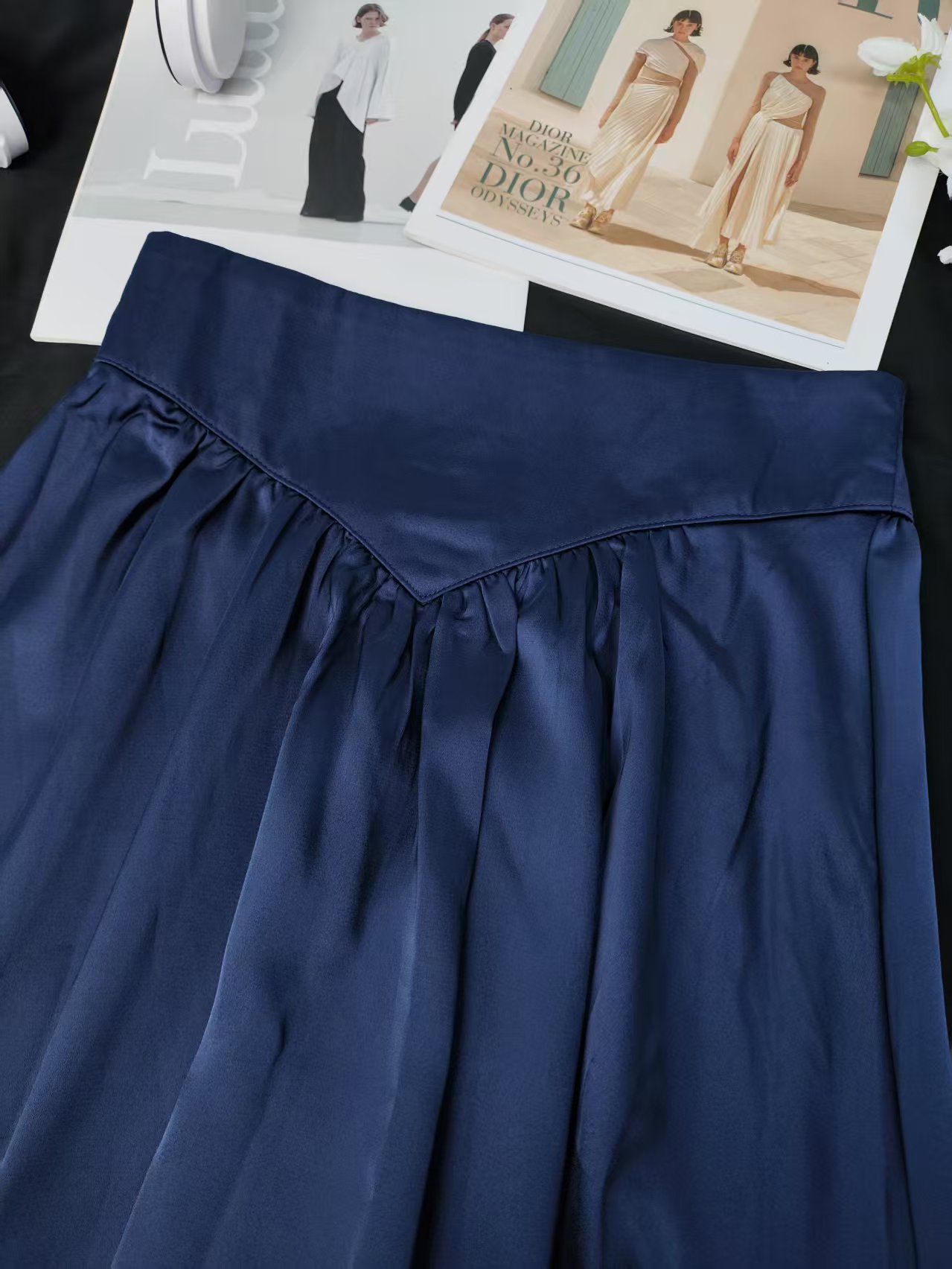 Acetate Satin Dark Blue Slim Fit Autumn Dress Large Skirt Embellished High Grade Women Long Skirt