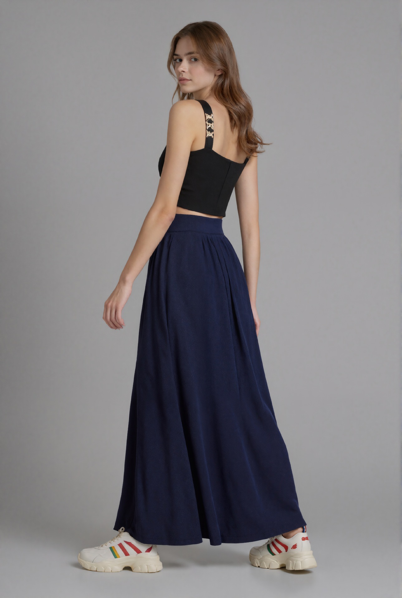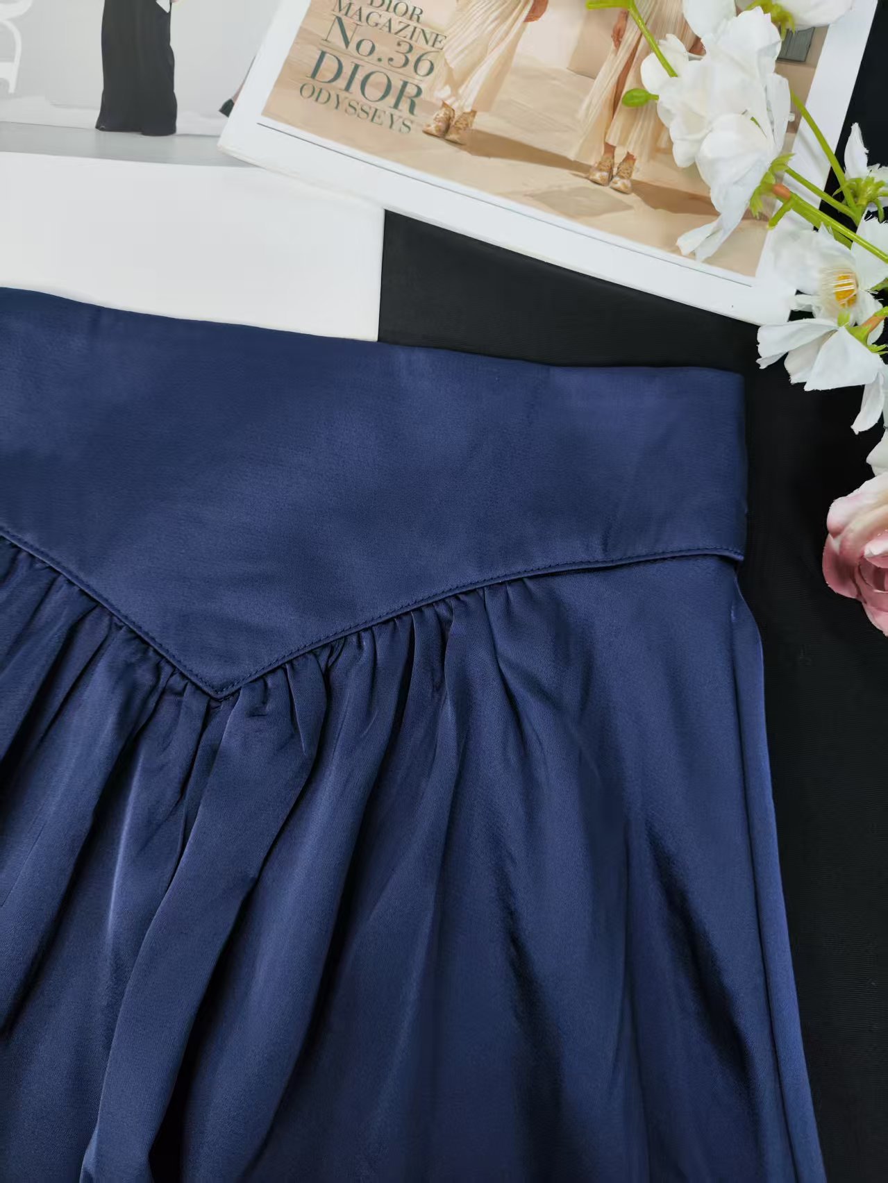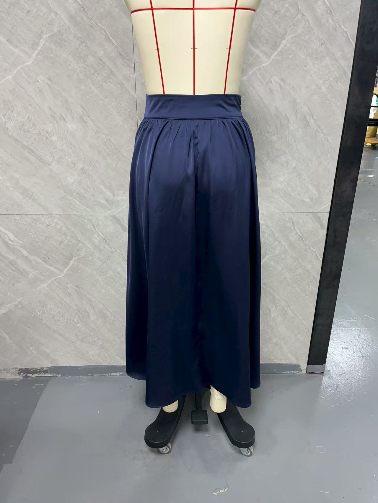 Acetate Satin Dark Blue Slim Fit Autumn Dress Large Skirt Embellished High Grade Women Long Skirt
